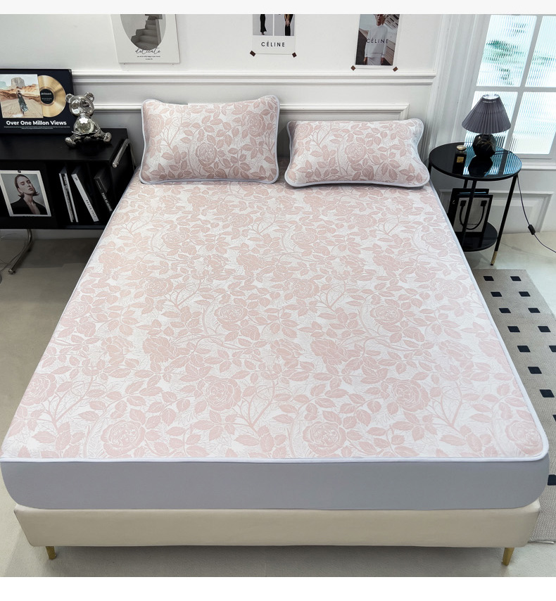 2025新款牛奶丝提花凉感凉席系列床笠款 情意浓粉床笠款