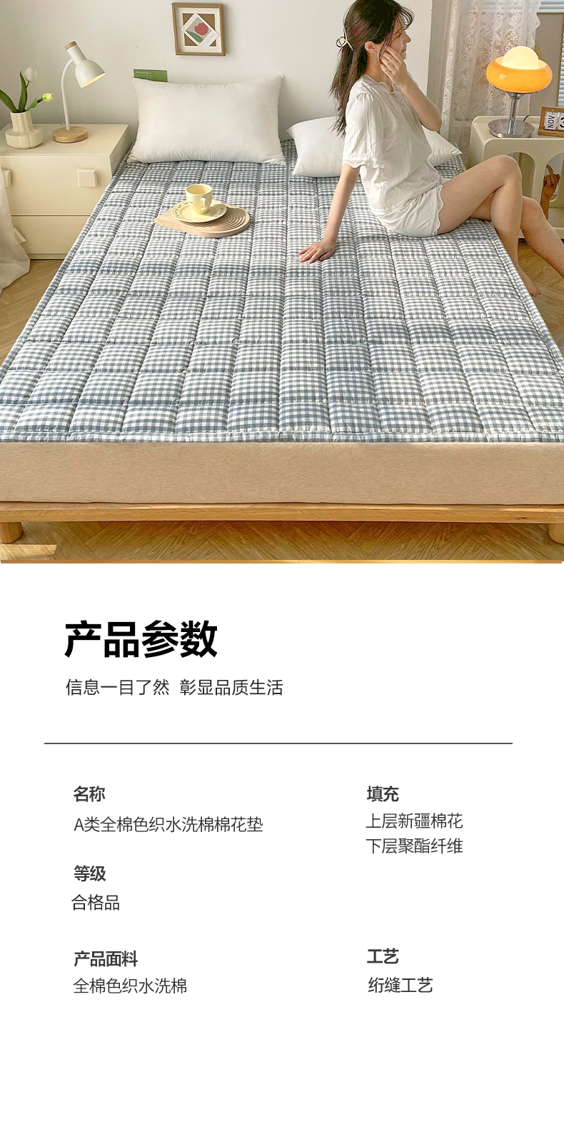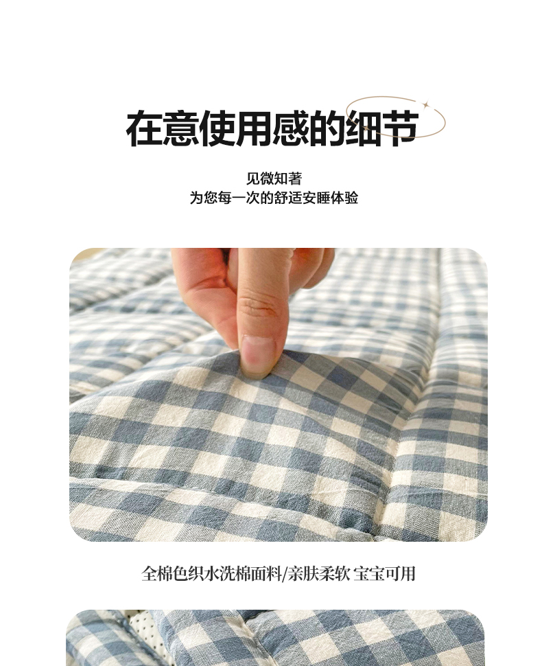 当前位置: 91家纺网 > 商品网购 > 床垫/床褥 > 普通床垫 > 丽诺 2024新款全棉色织棉花床护垫 全棉色织水洗棉-蓝小格
