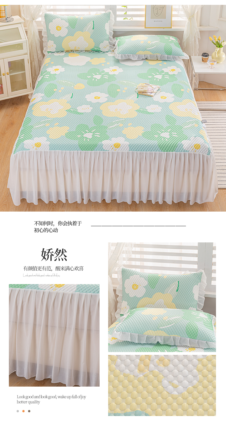 2025新款A类冰豆豆床裙款印花凉席 娇然