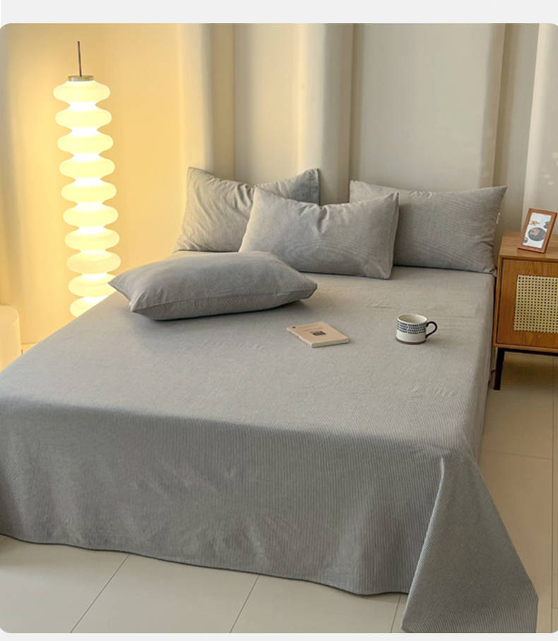 恋之语家纺 2025新款全棉纯棉色织床单单品单床单床单单件 条纹灰