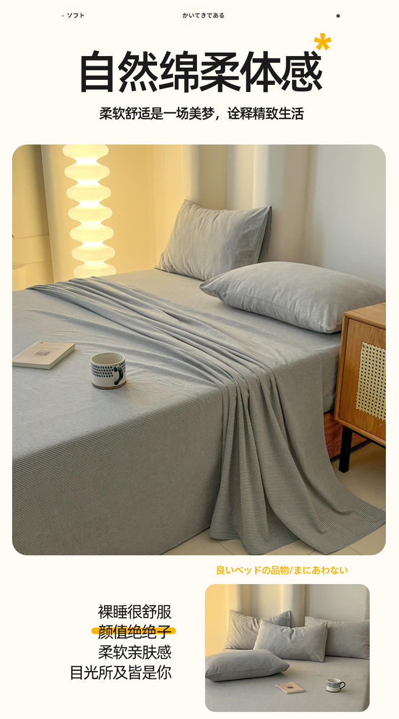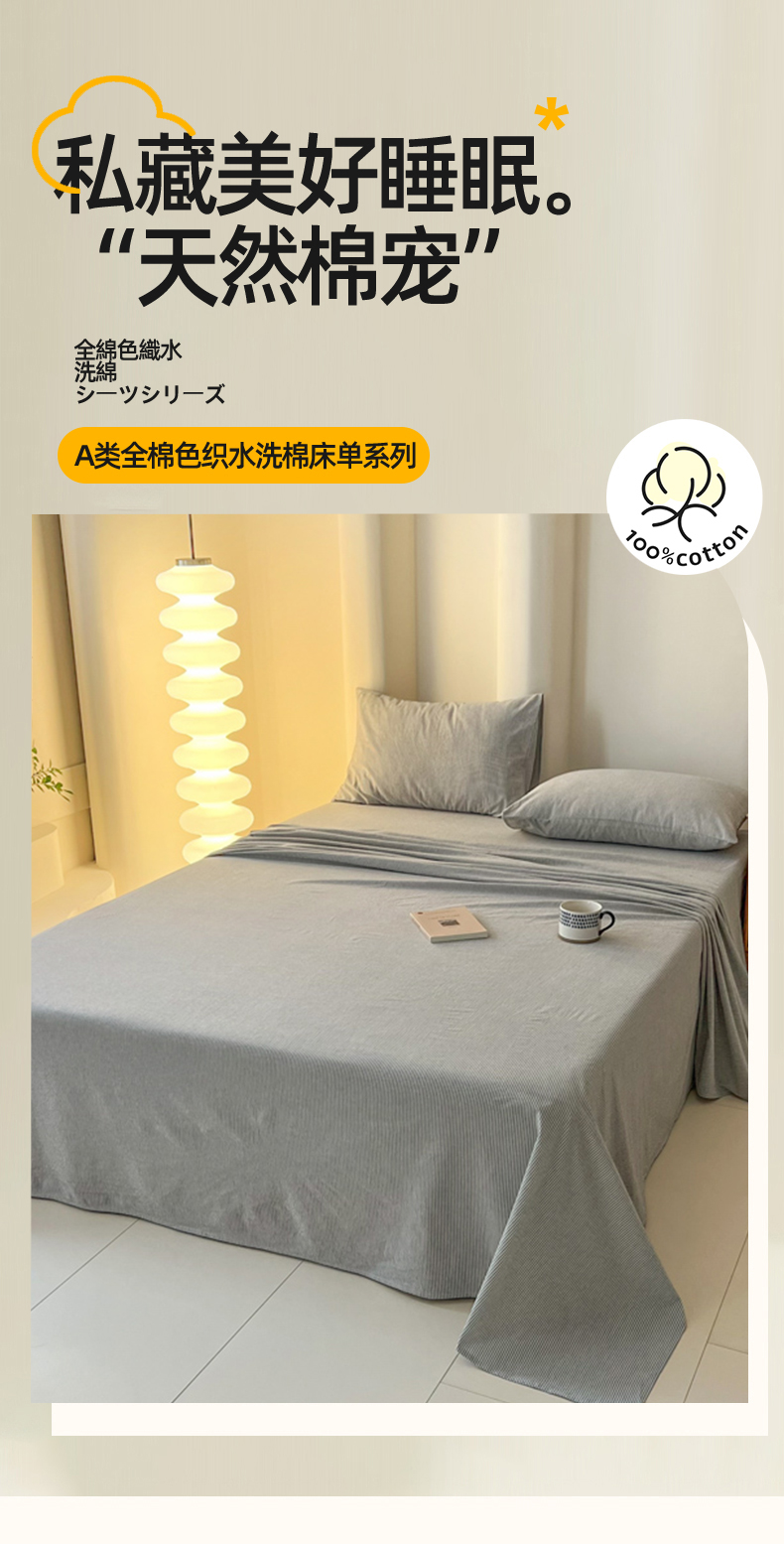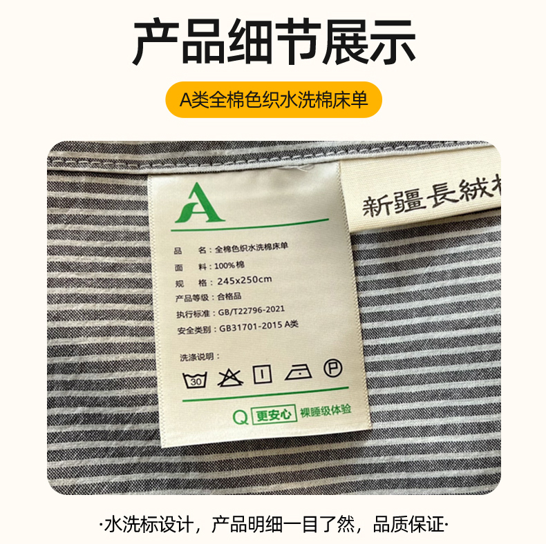 商品名称:恋之语家纺 2025新款全棉纯棉色织床单单品单床单床单单件 条纹灰