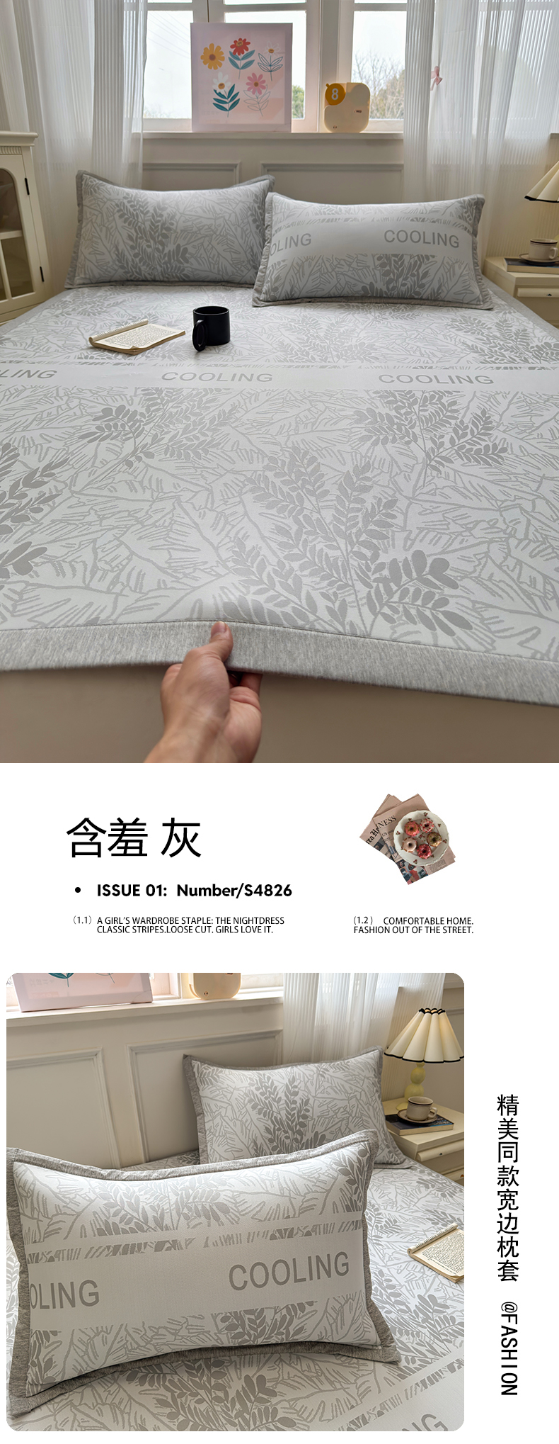 商品名称:花漾家居 2025新款A类色织提花PE凉感丝凉席三件套床单床笠款 床单款-含羞灰