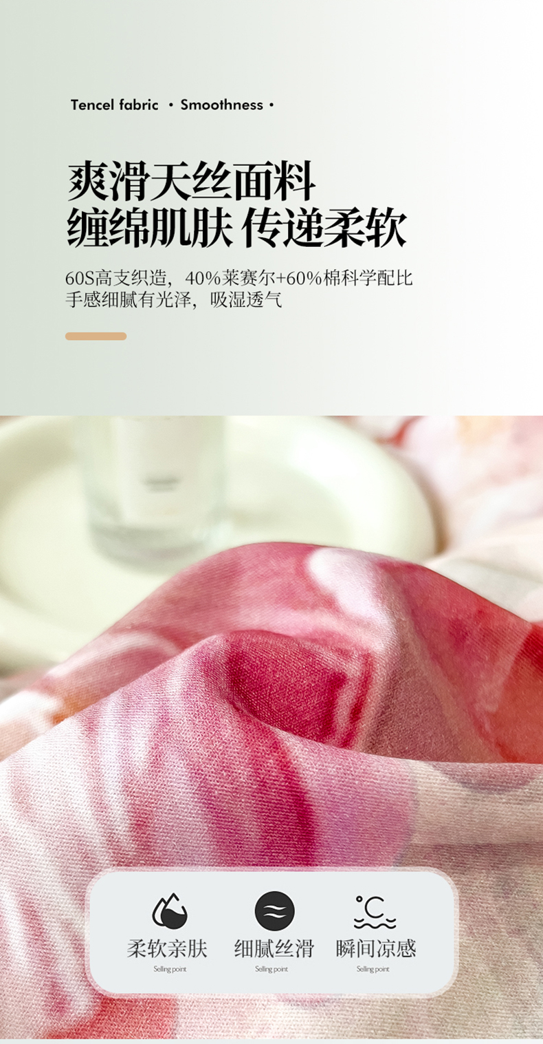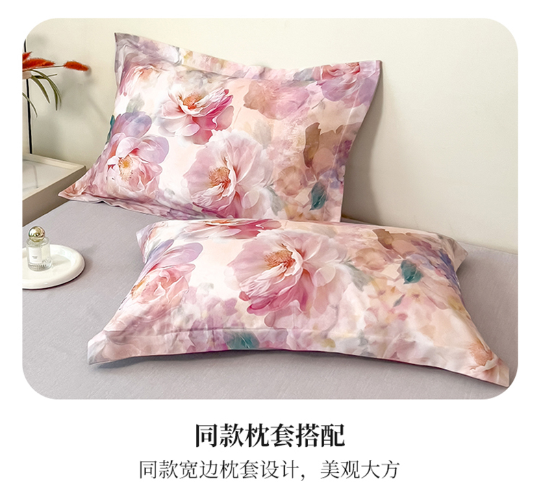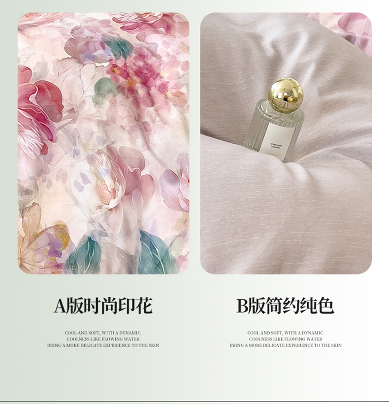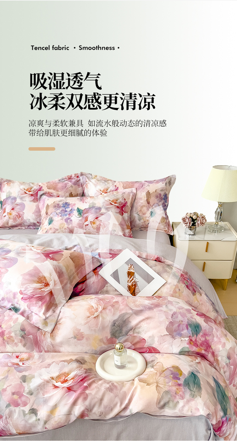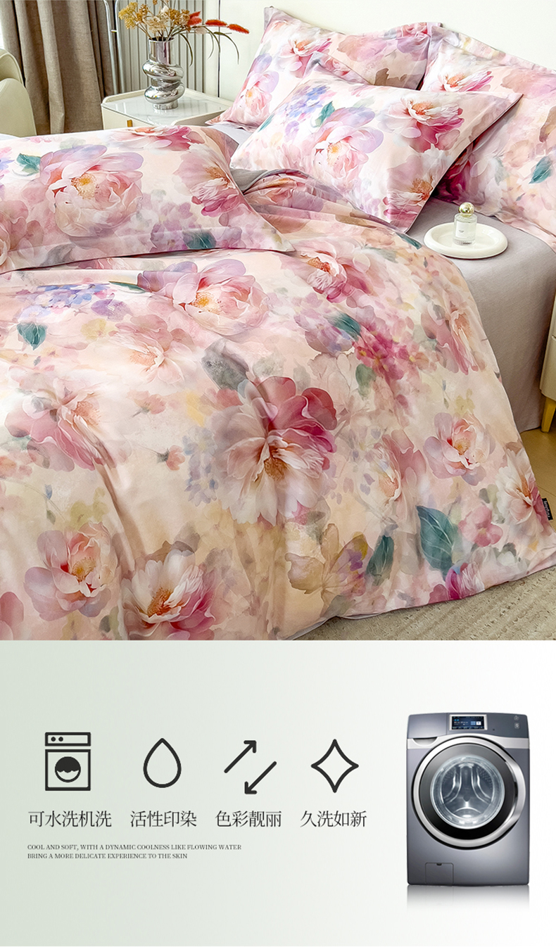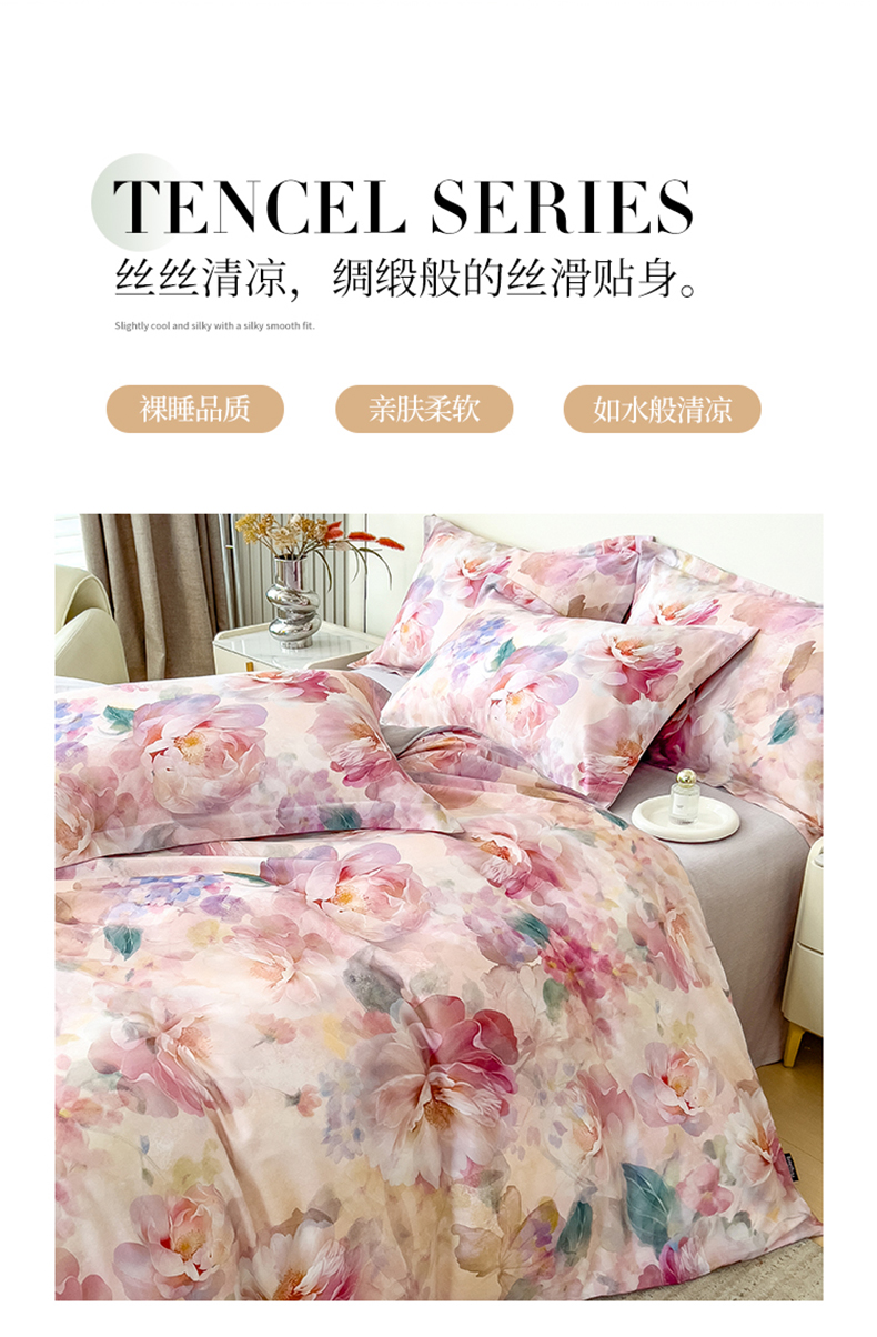 商品名称:芃成家纺 2025新款A类莱赛尔天丝棉四件套 春暖花开-粉