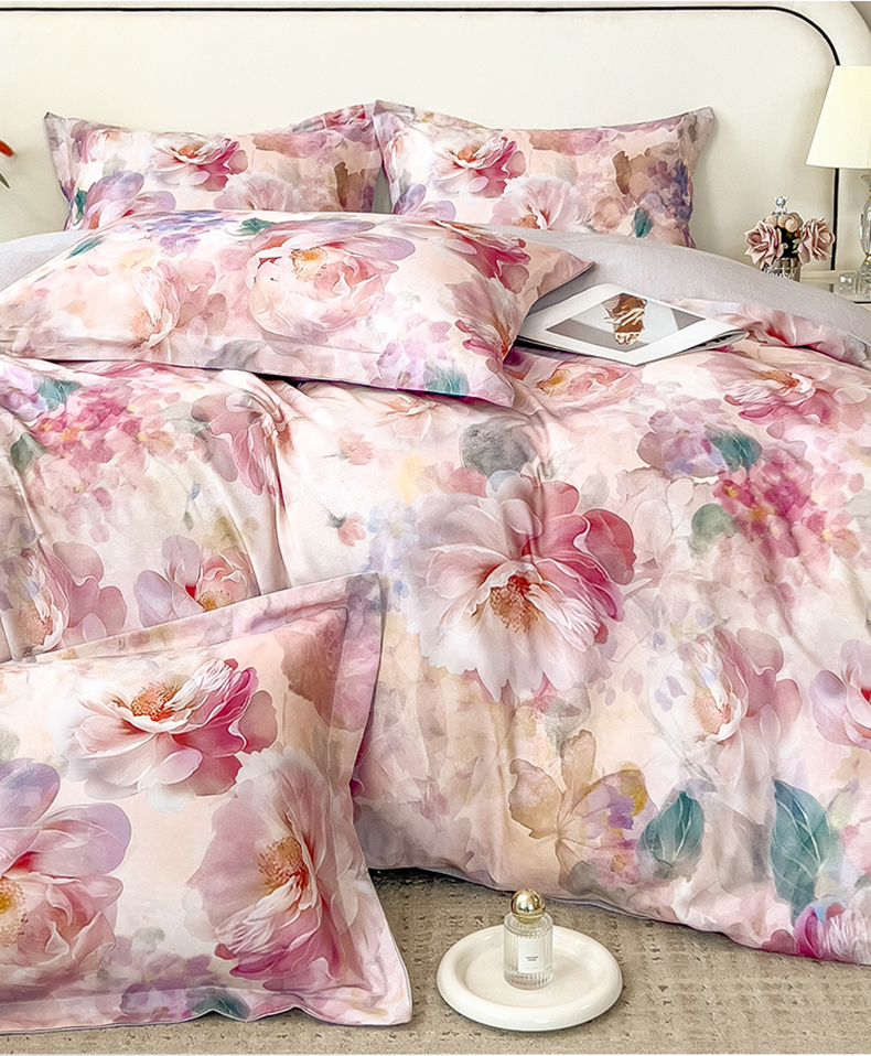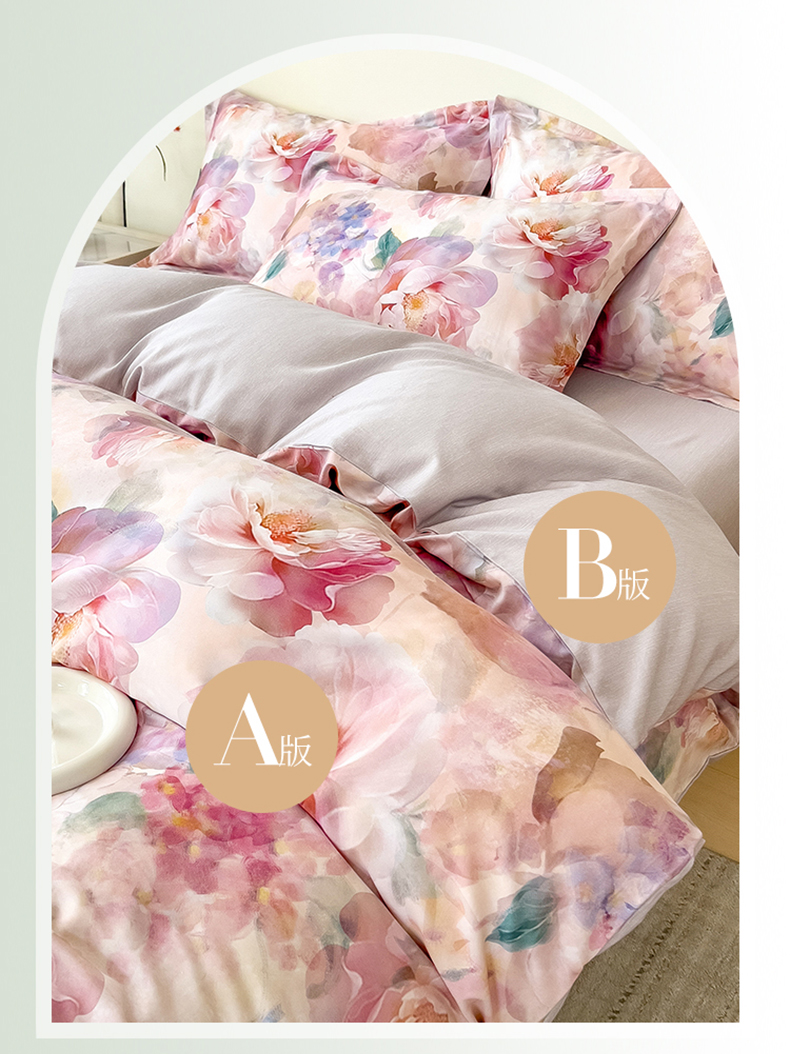 芃成家纺 2025新款A类莱赛尔天丝棉四件套 春暖花开-粉