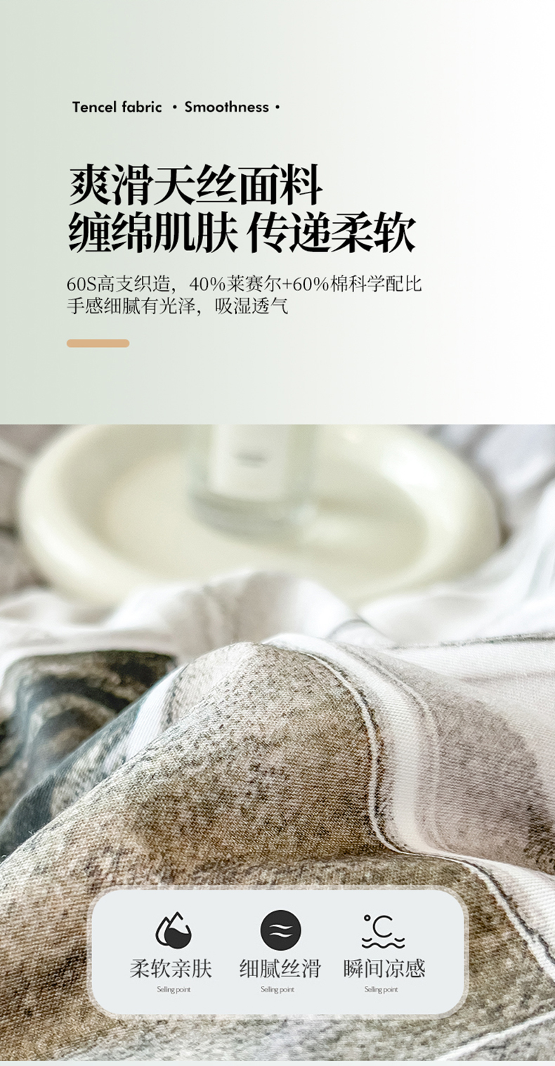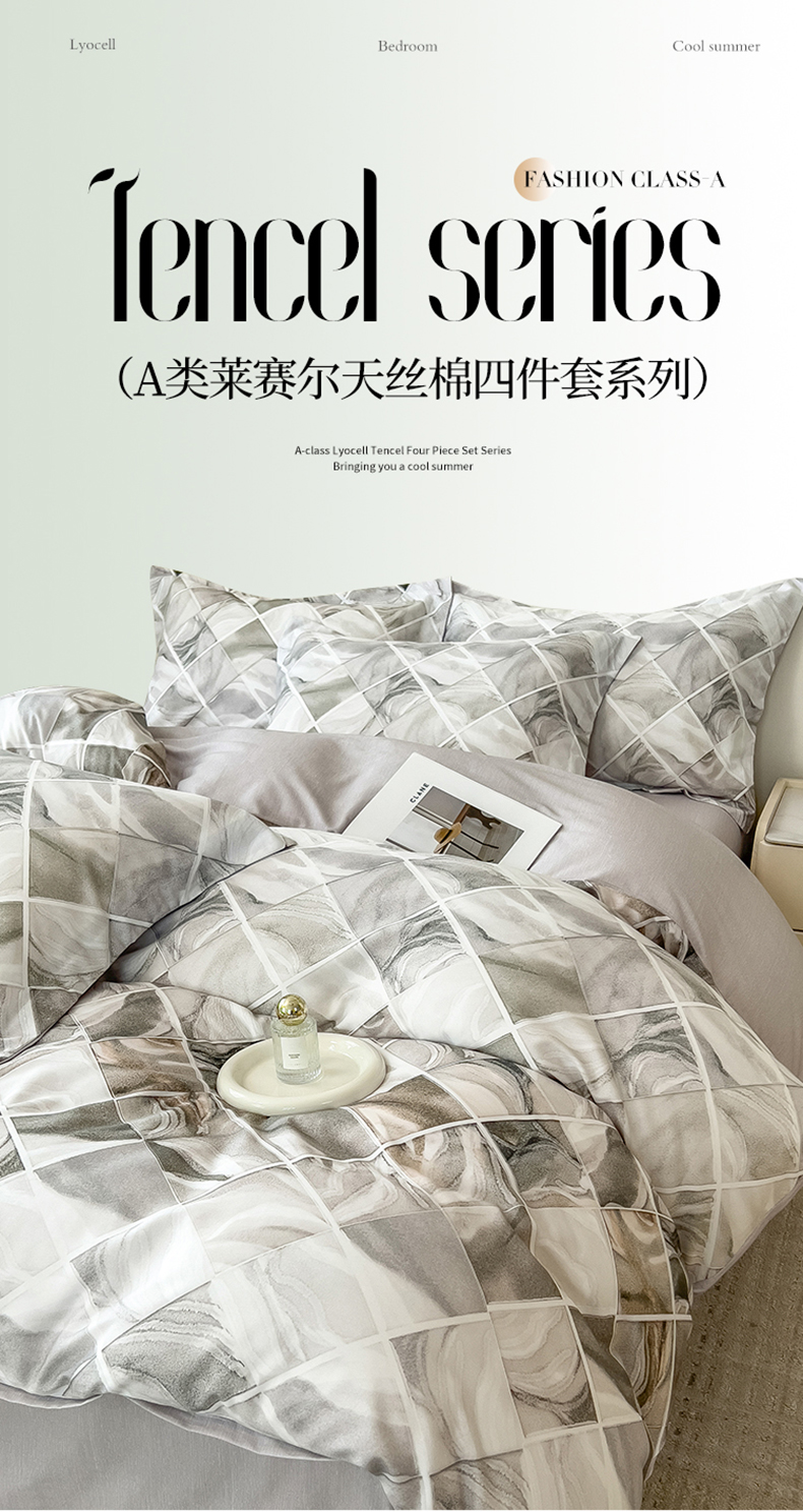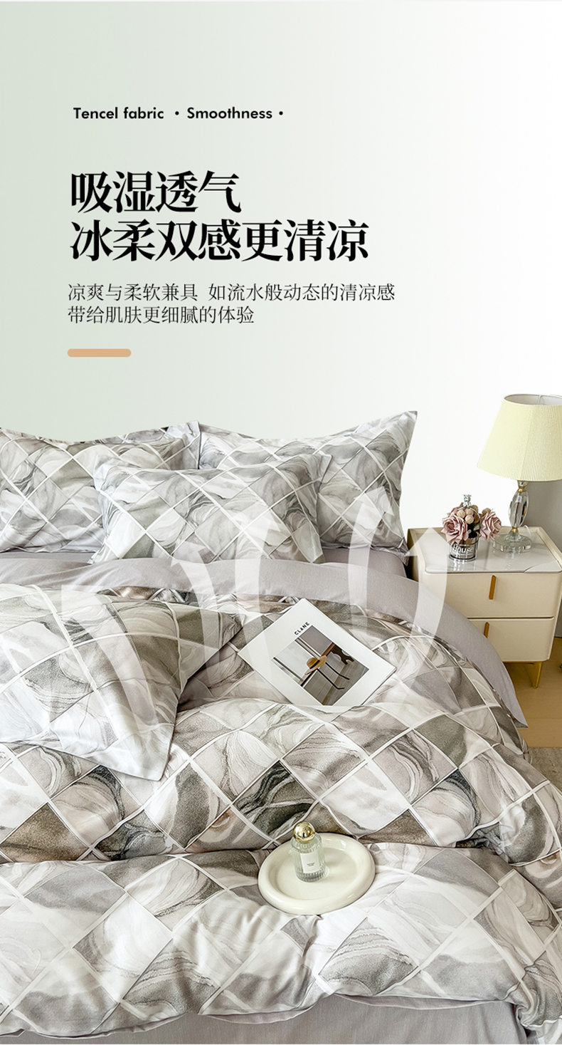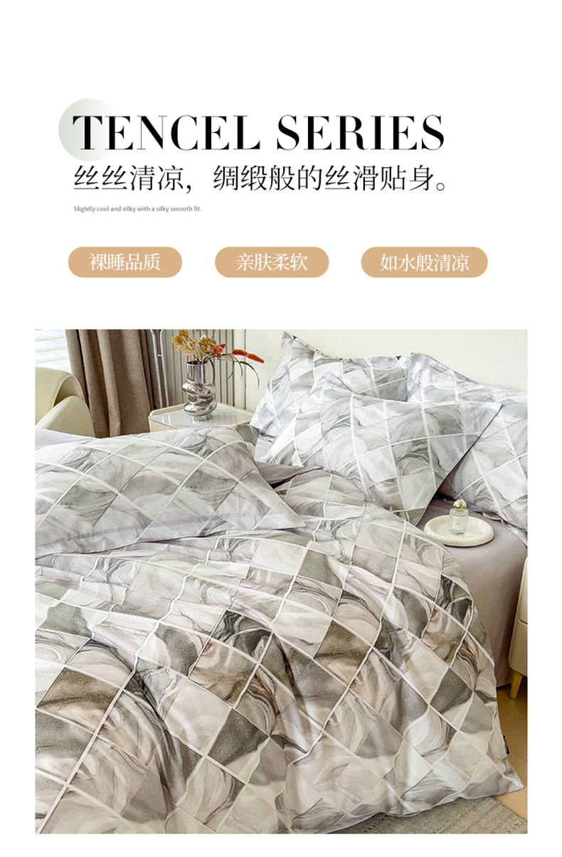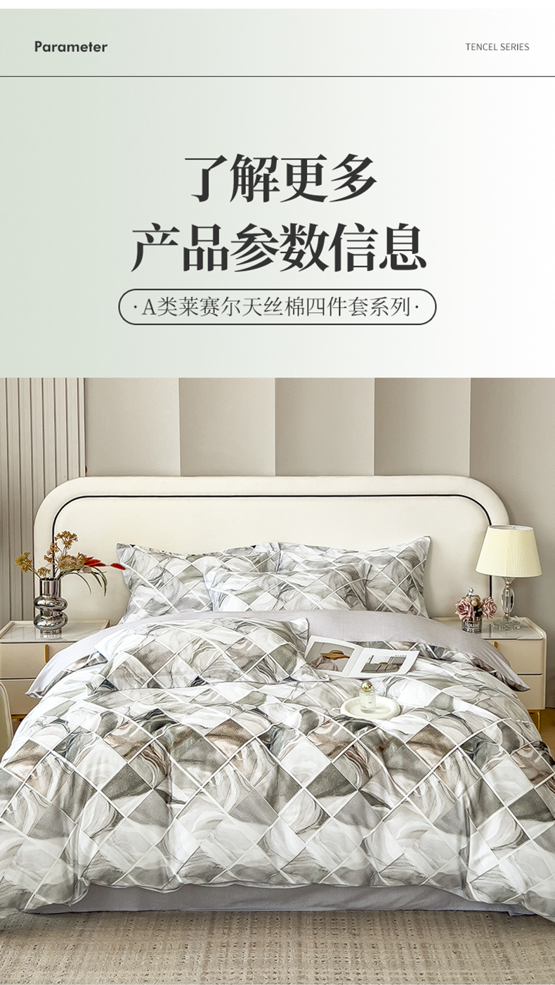 商品名称:芃成家纺 2025新款A类莱赛尔天丝棉四件套 秘境灰