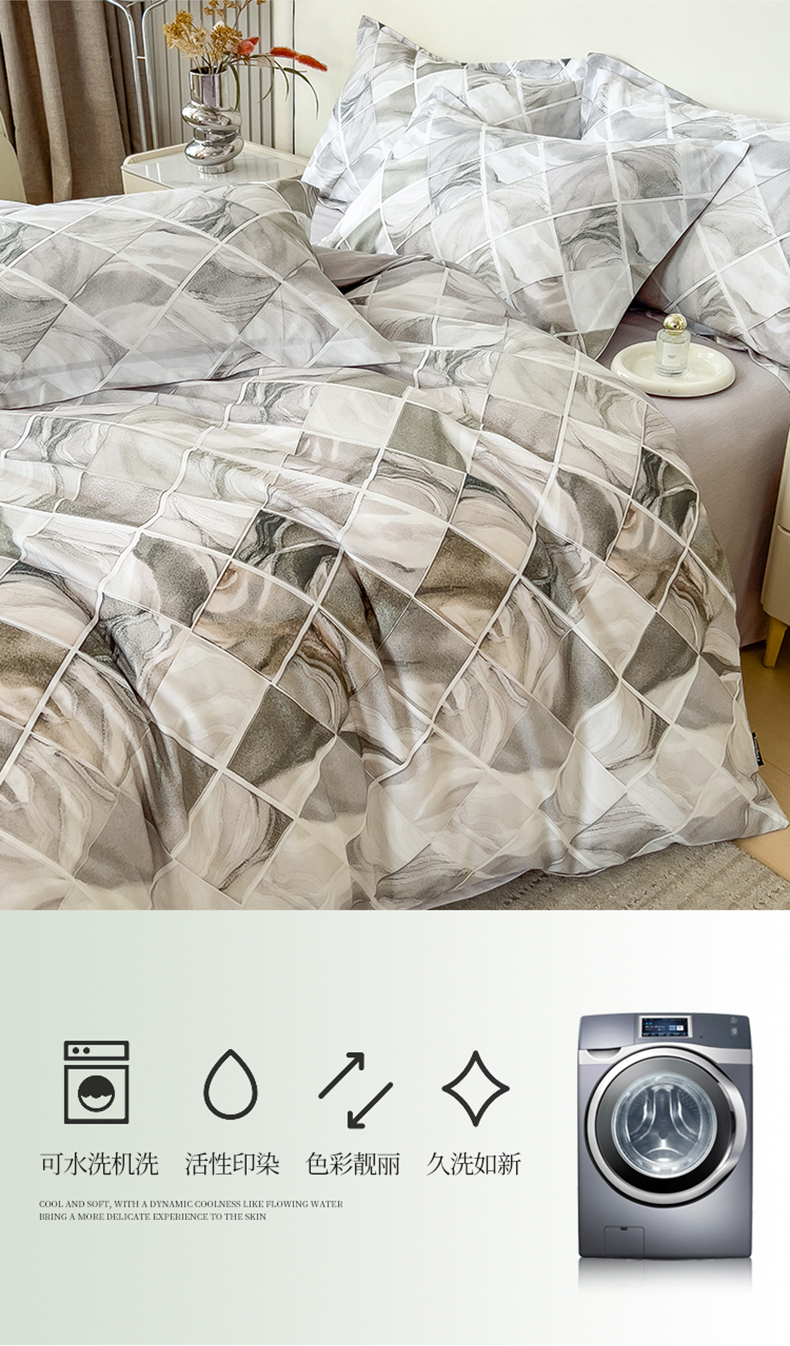 芃成家纺 2025新款A类莱赛尔天丝棉四件套 秘境灰