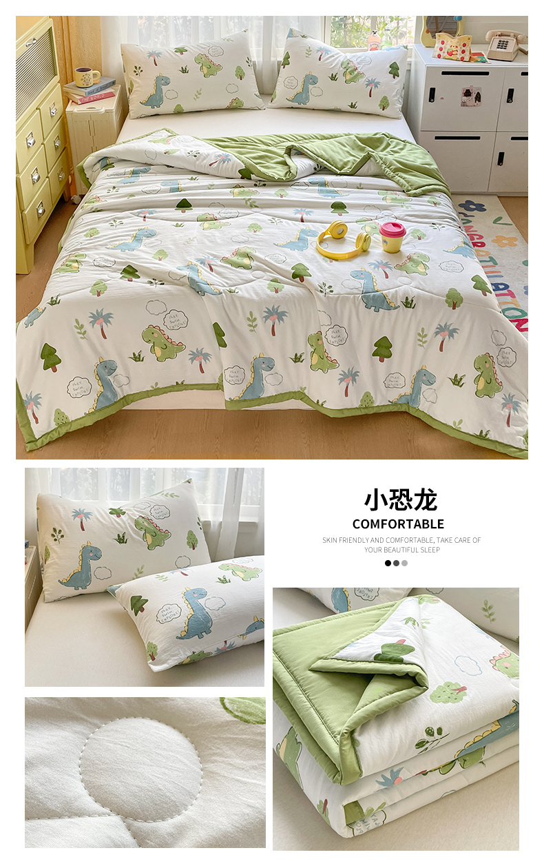美澳家纺 2025新款水洗棉印花夏被夏凉被空调被 小恐龙