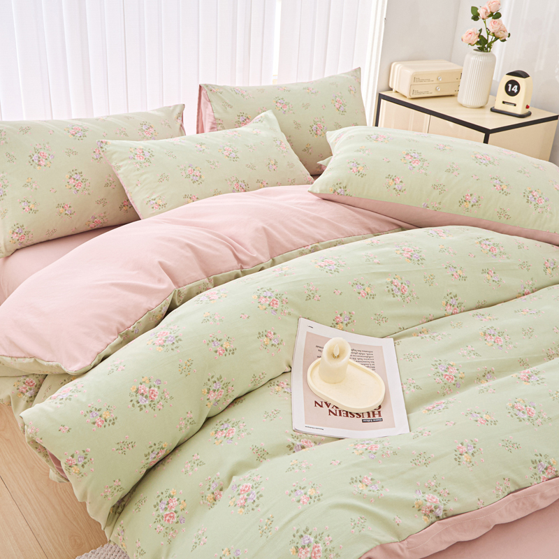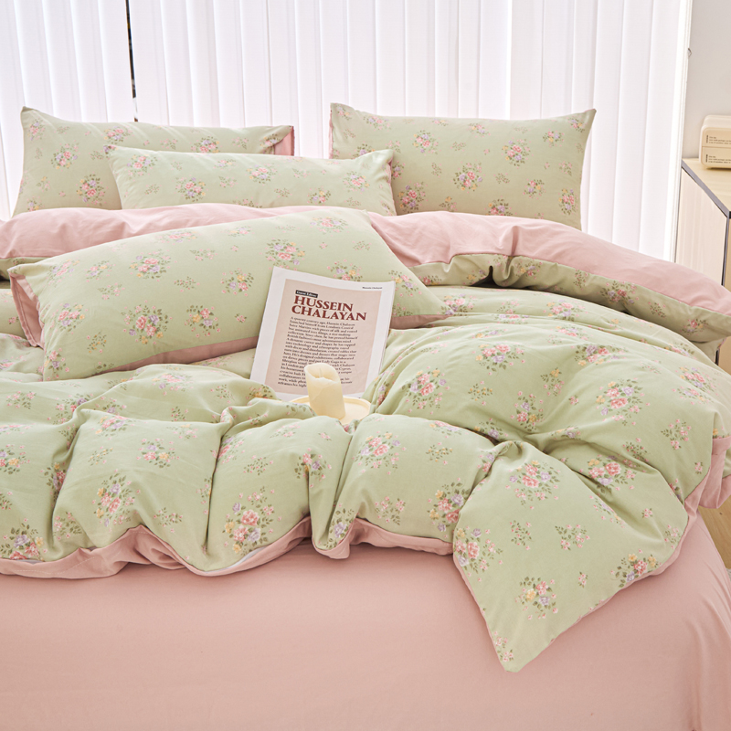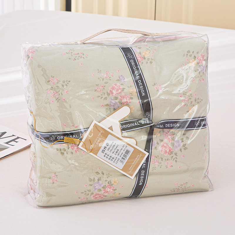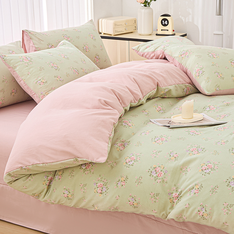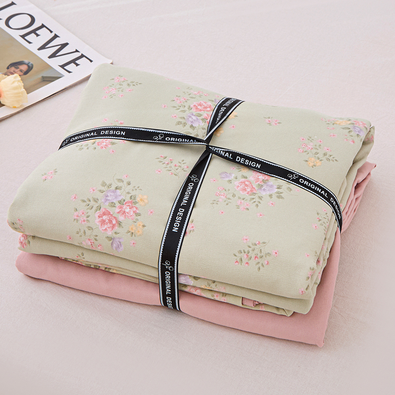 蕾诺家纺 2025新款直播新款A类有氧提花云纱棉圆角吊边工艺四件套学生三件套 晴天