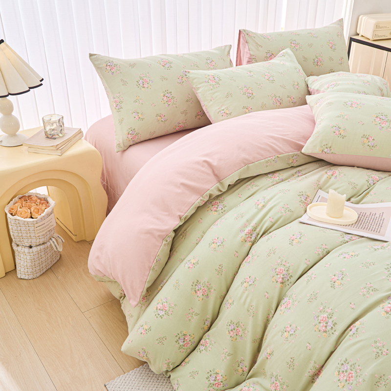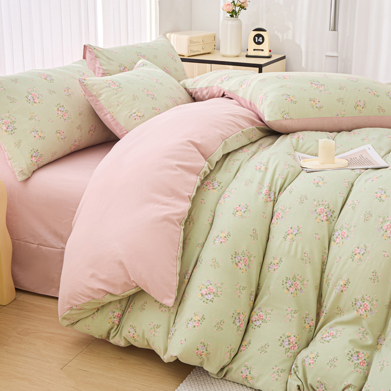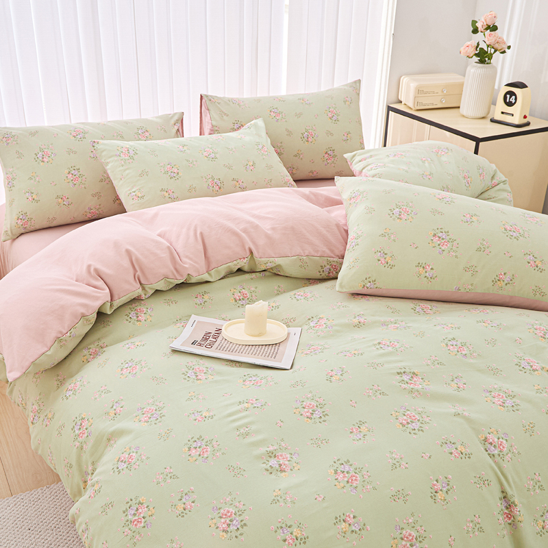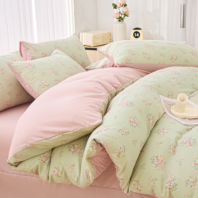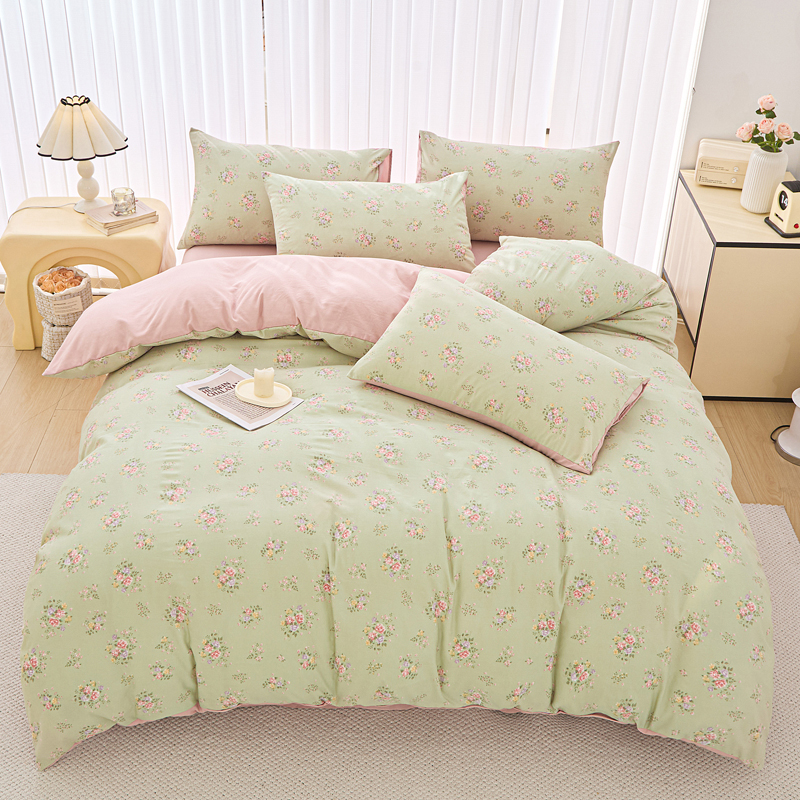 蕾诺家纺 2025新款直播新款A类有氧提花云纱棉圆角吊边工艺四件套学生三件套 晴天