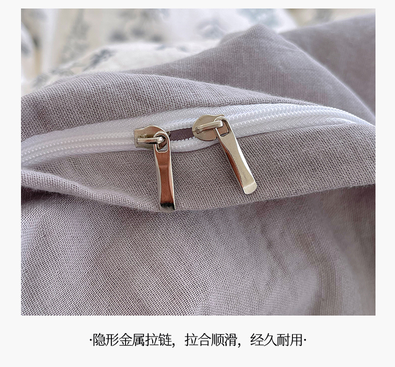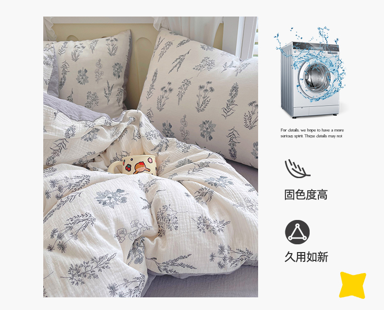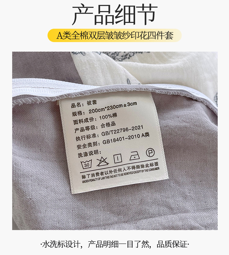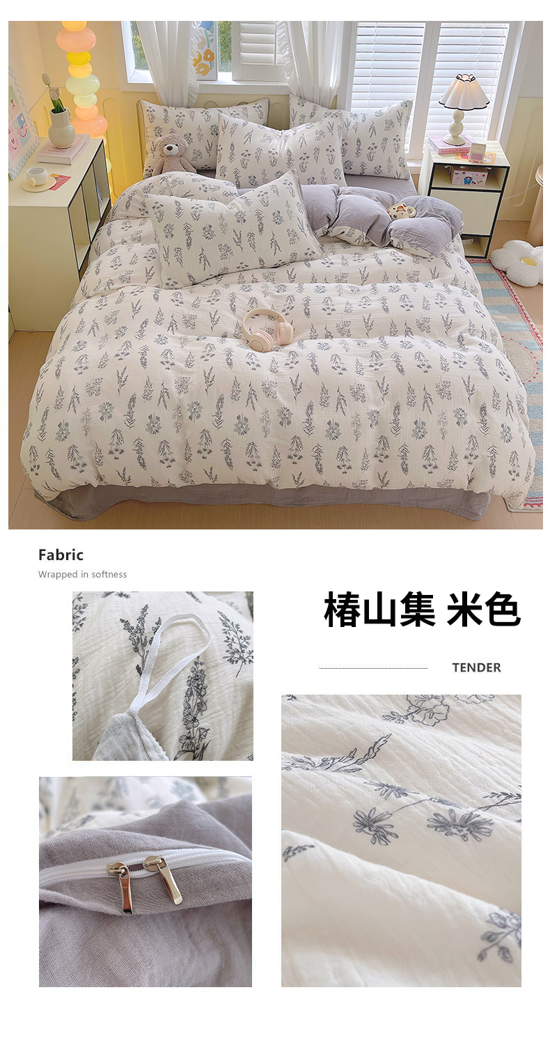 商品名称:凯磊2025新款.纯棉皱皱纱数码印花四件套 椿山集 米色