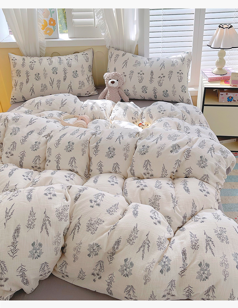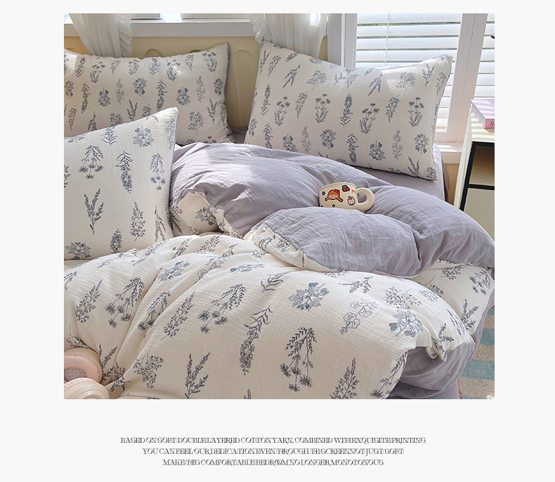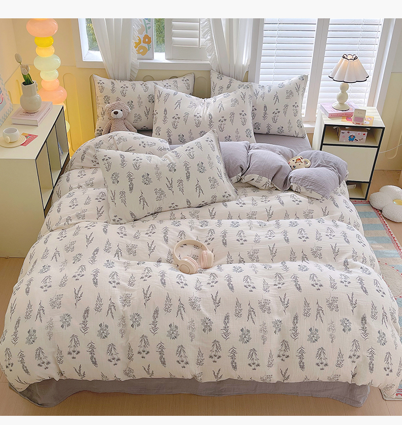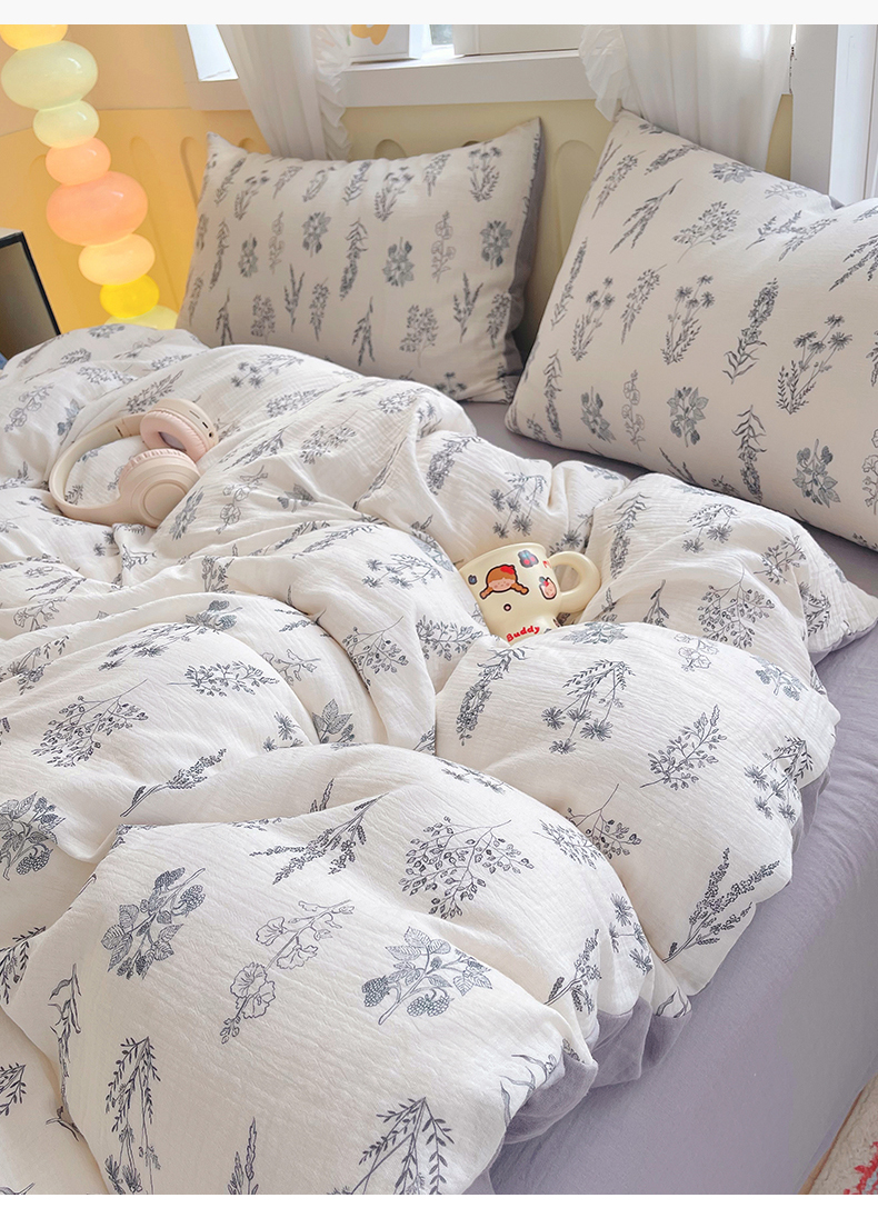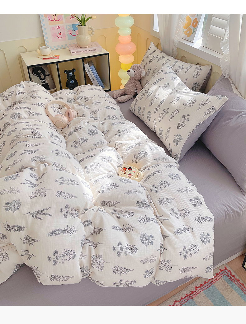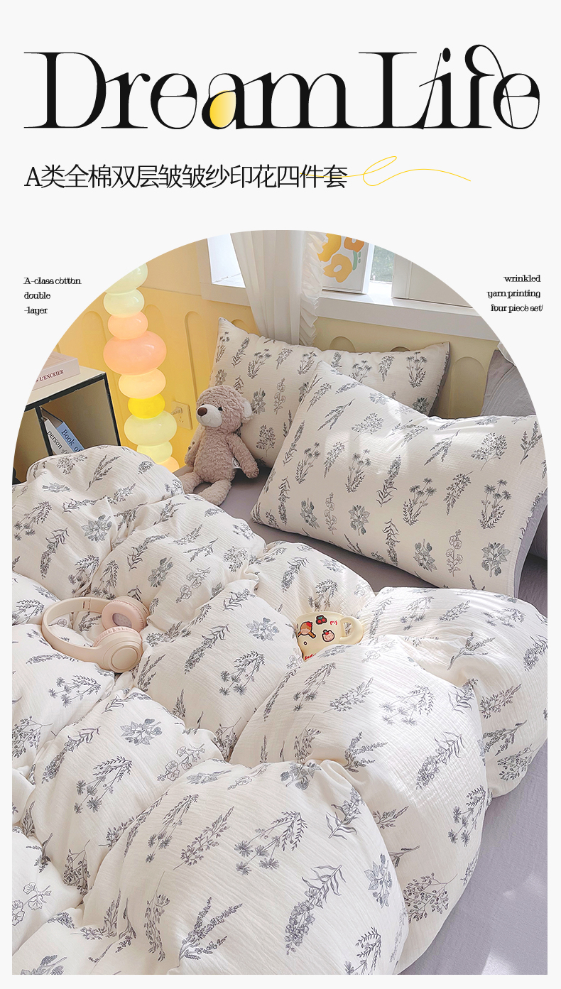 凯磊2025新款.纯棉皱皱纱数码印花四件套 椿山集 米色