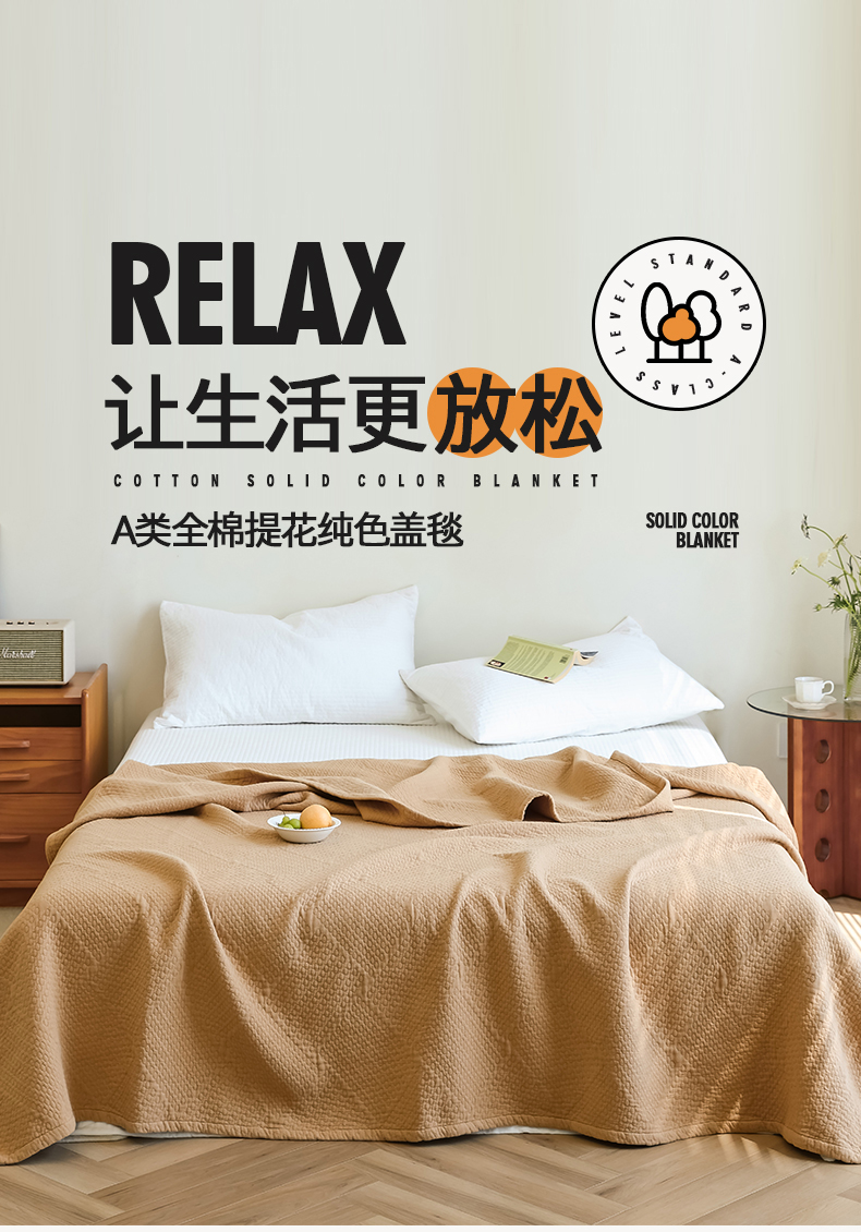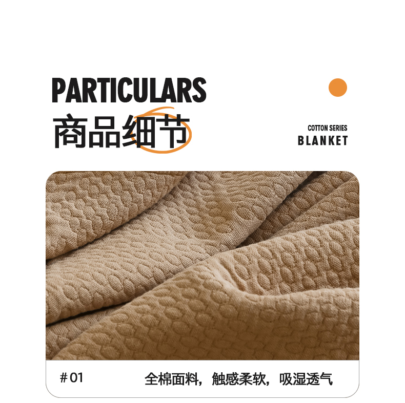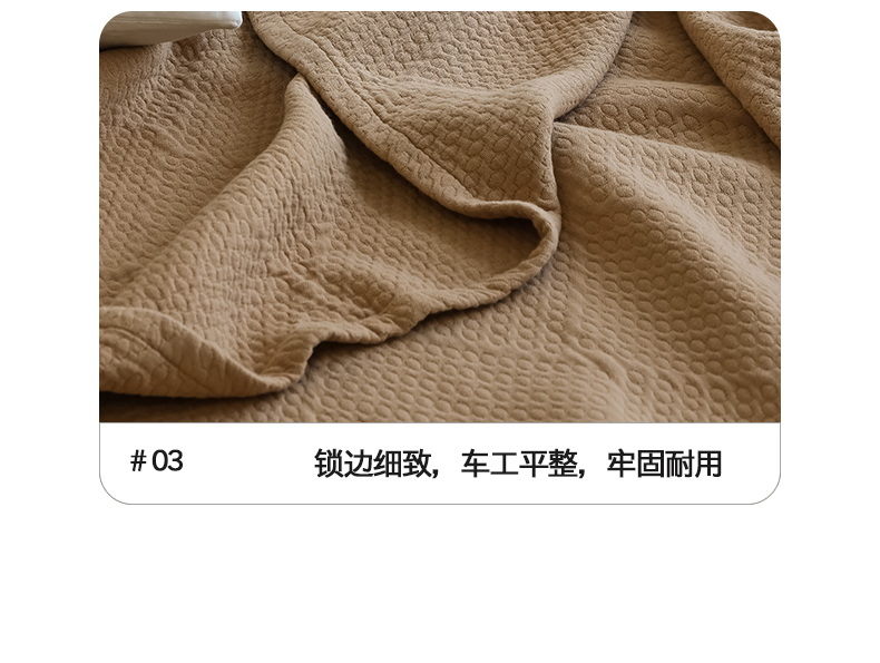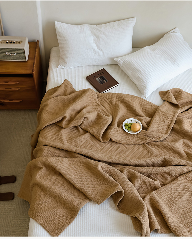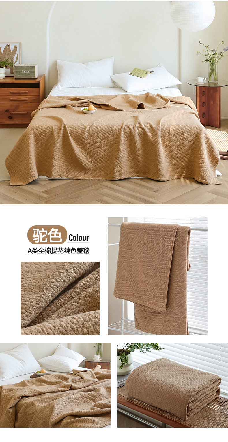 商品名称:雯雨家纺2025新款A类全棉加厚六层纱提花纯色盖毯 六层纱-驼色