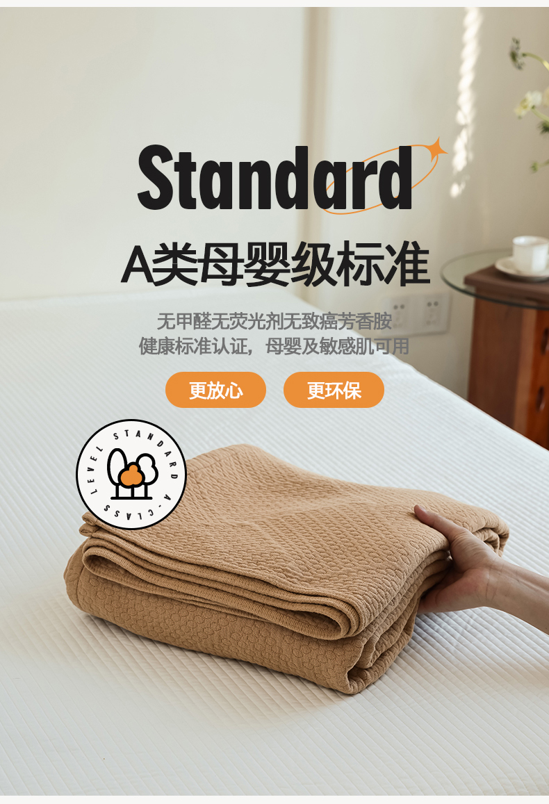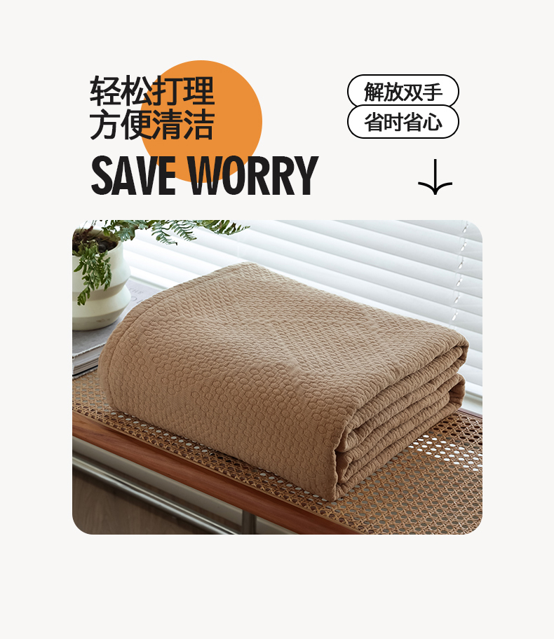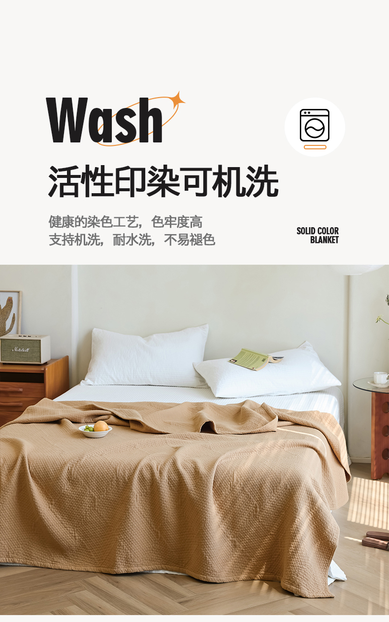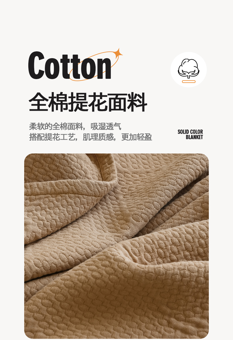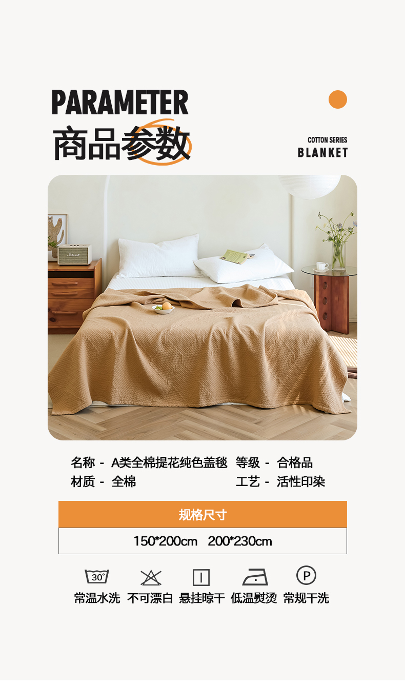 商品名称:雯雨家纺2025新款A类全棉加厚六层纱提花纯色盖毯 六层纱-驼色