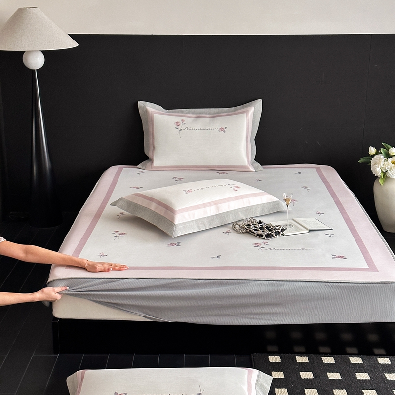 三味舒屋 2025新款凉感抗菌南法恬谧系列大版数码印花冰丝床席-床笠 米蕾粉-床笠款