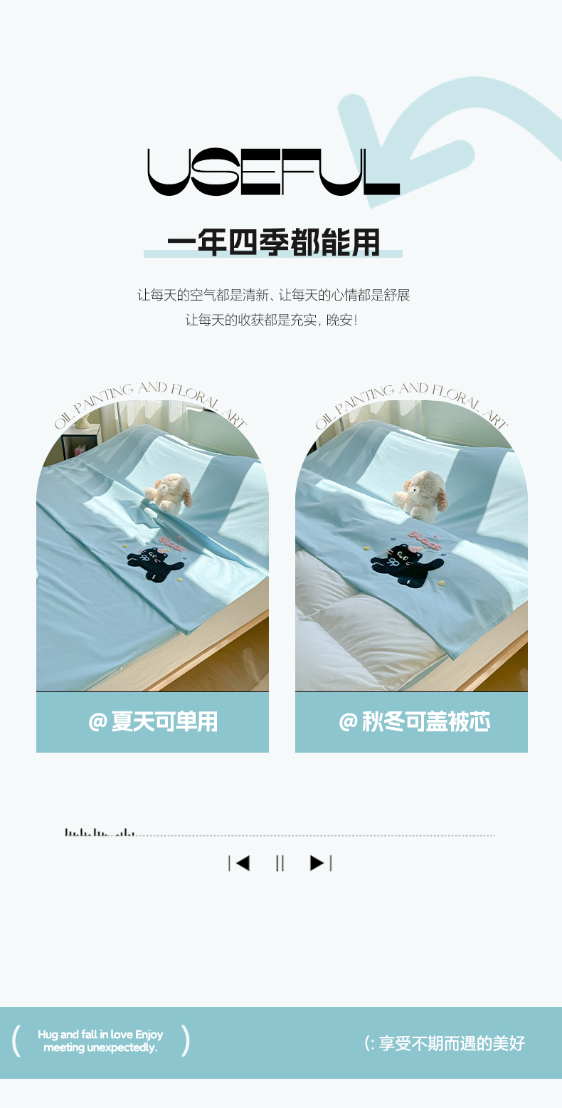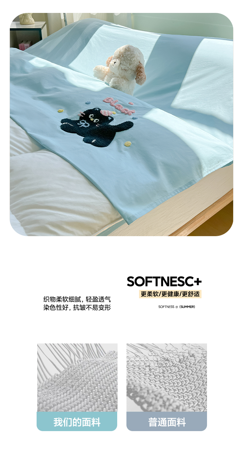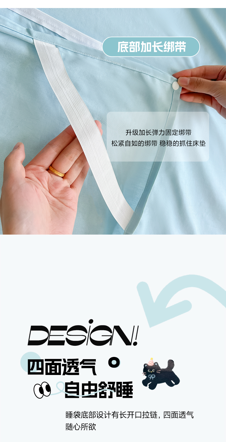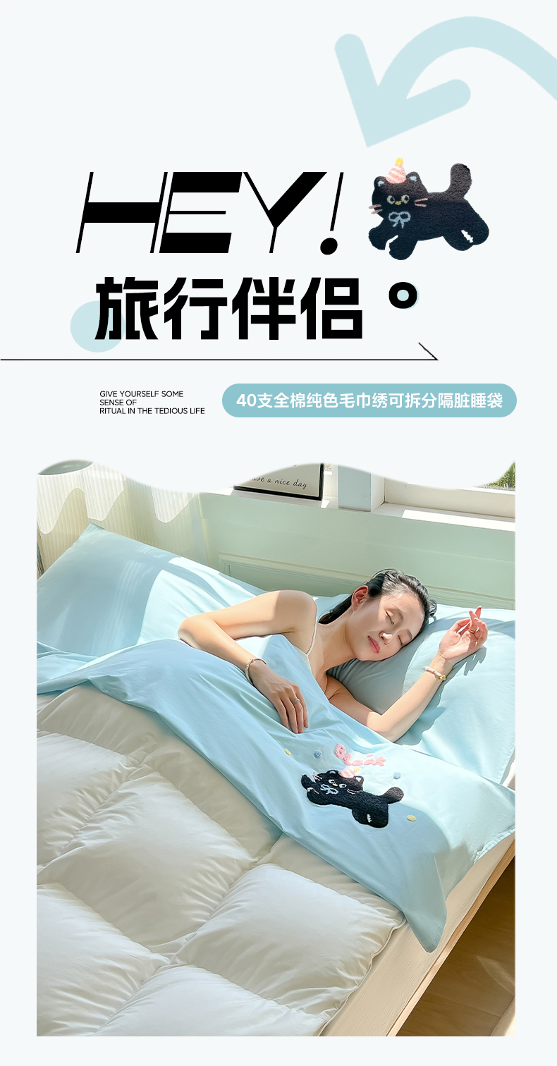 商品名称:柒星睡袋 2025新款款40支全棉纯色毛巾绣可拆分隔脏睡袋 黑猫 蓝