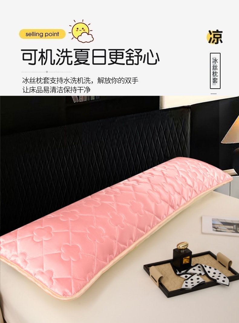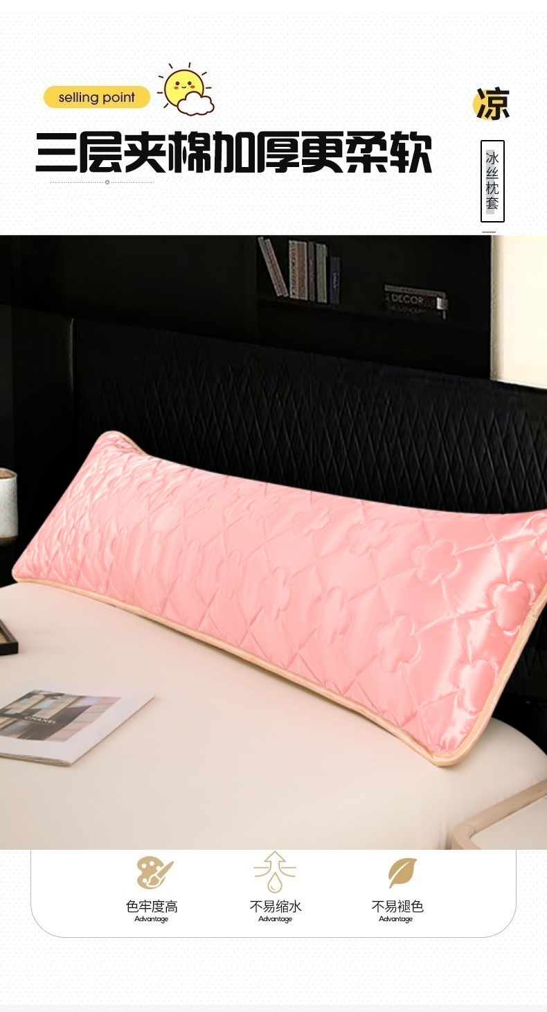 商品名称:梦舒羽 2025新款夏季冰丝凉感夹棉枕套双人情侣枕头套加长加厚枕芯套1.5m内胆套 夹棉加厚-玉色