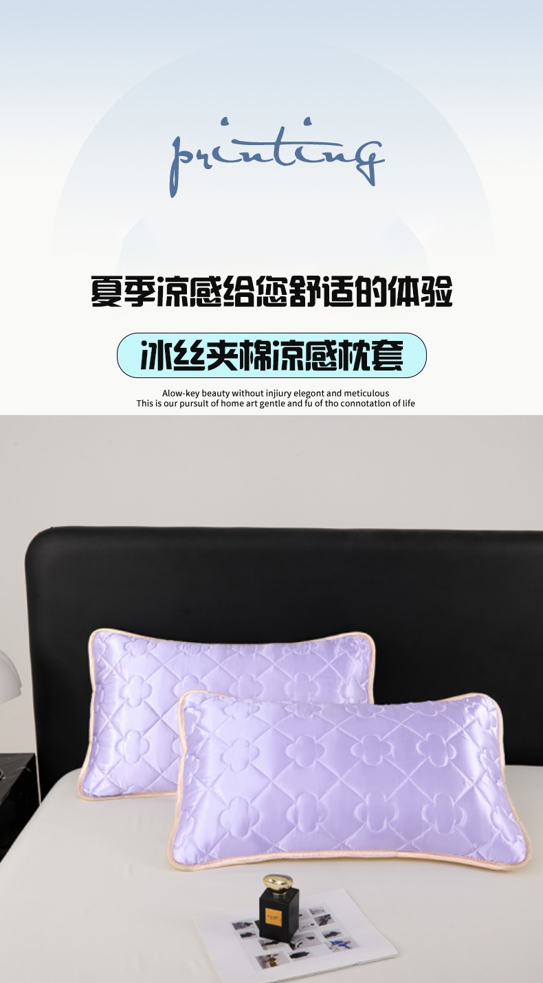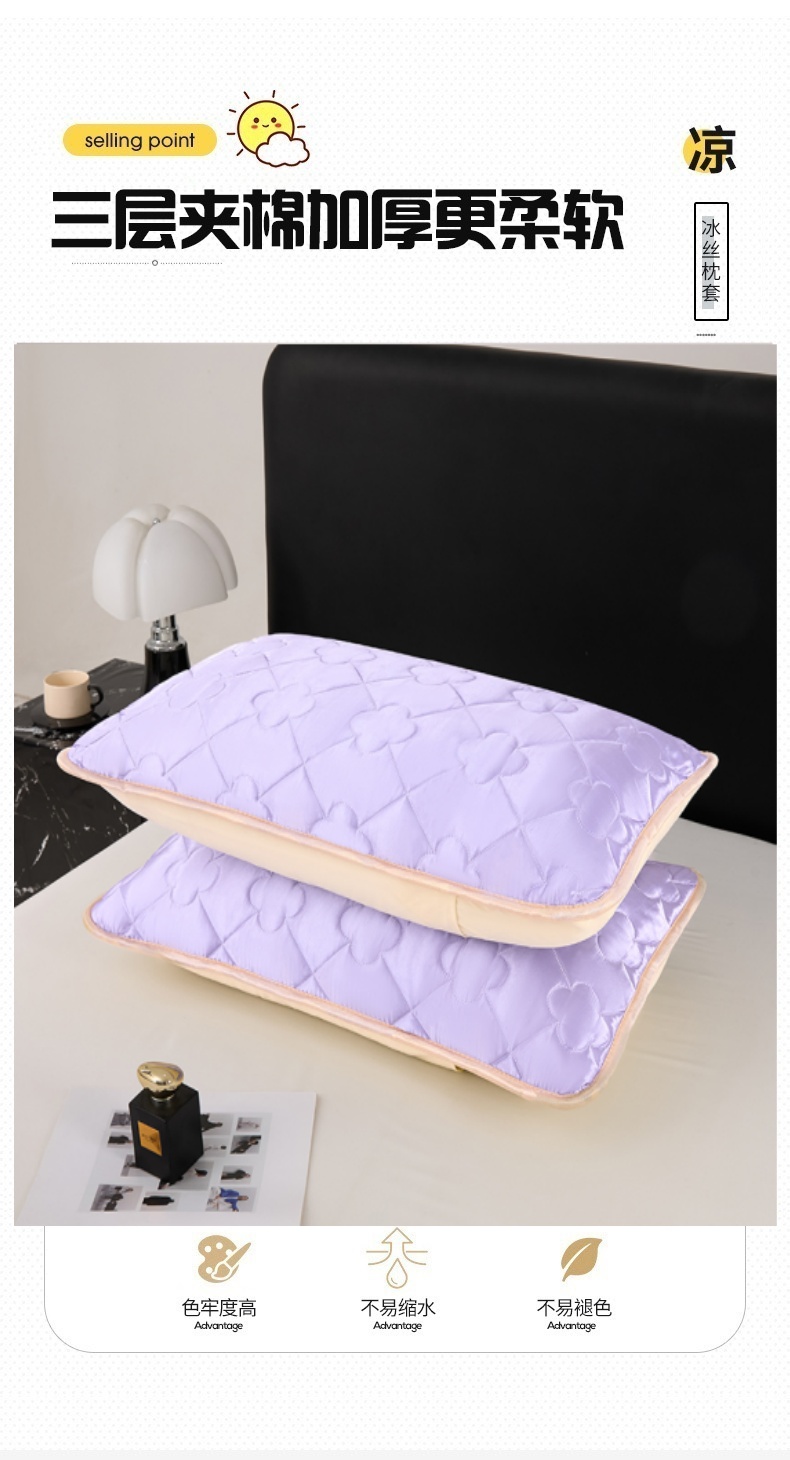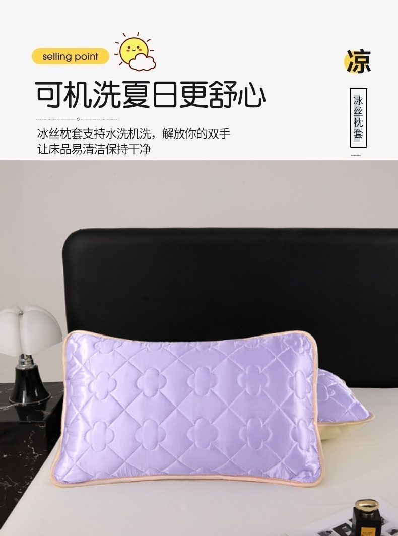 商品名称:梦舒羽 2025新款夏季冰丝凉感夹棉枕套单人一对装可水洗加厚枕头套宿舍48x74cm枕芯套 夹棉加厚-雪青色