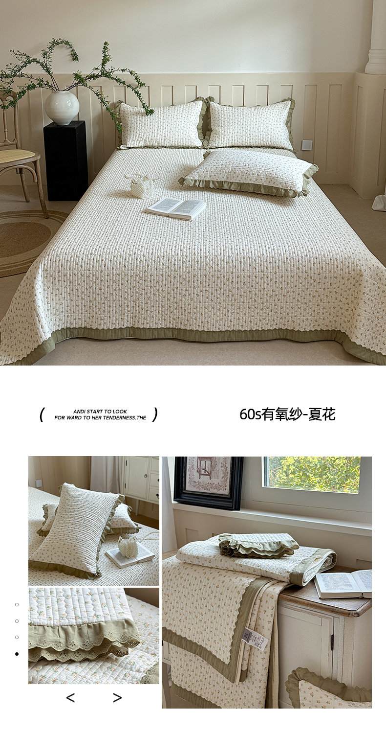 • 91家纺网 家纺一手货源 找家纺 茉夕家纺 2025新款双面60s支有氧纱纯棉印花水洗床盖 60s有氧纱-夏花