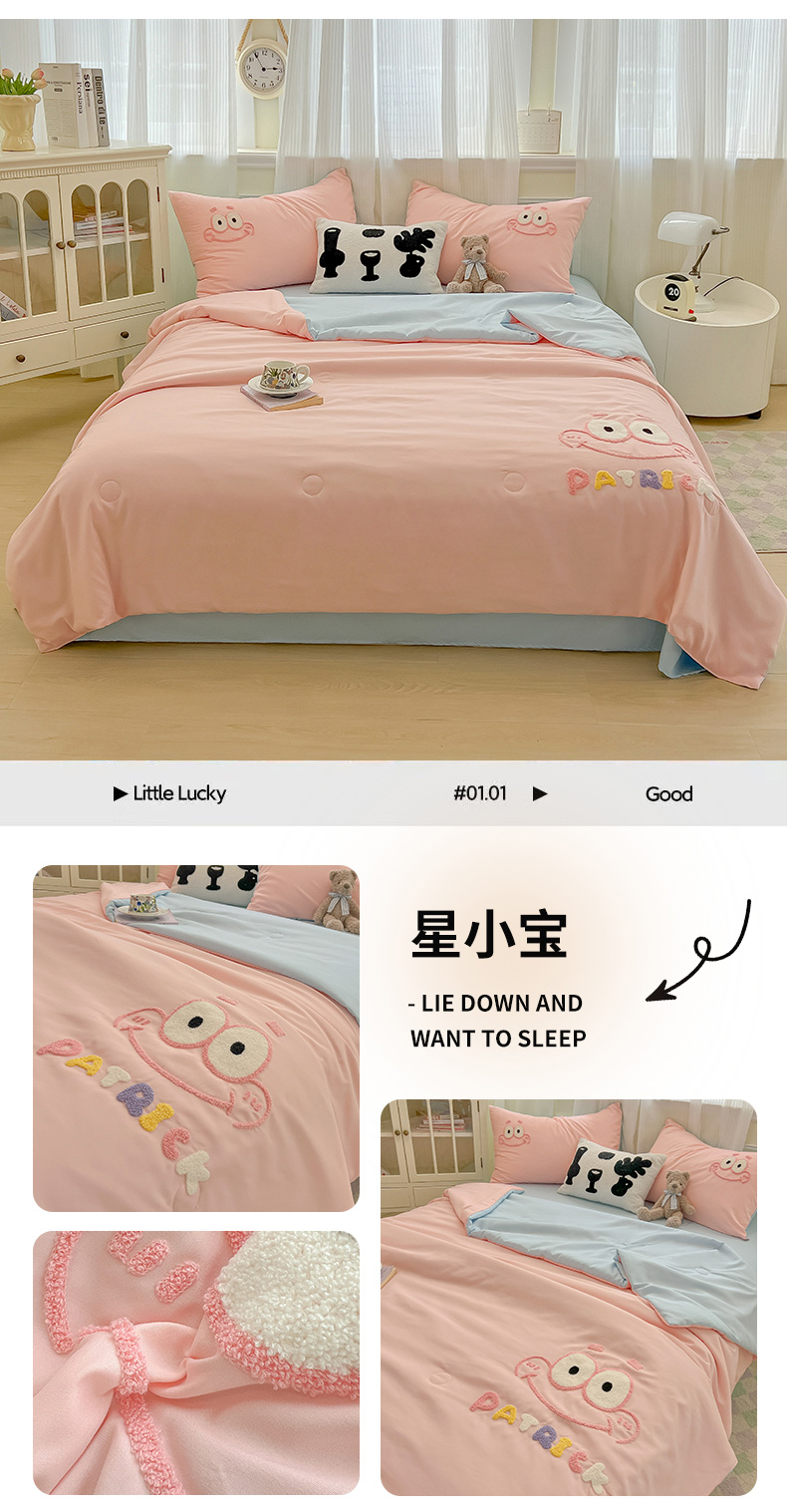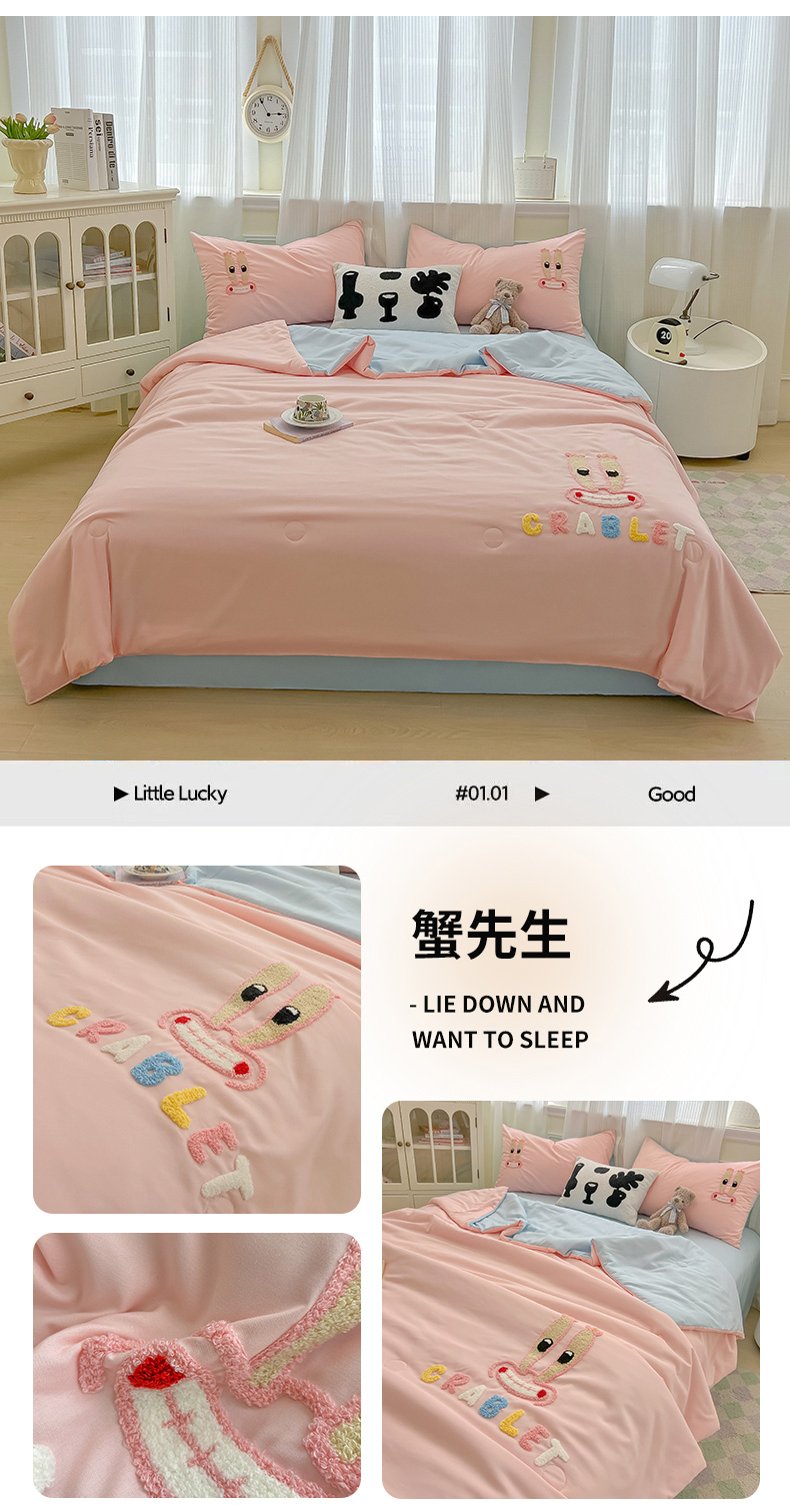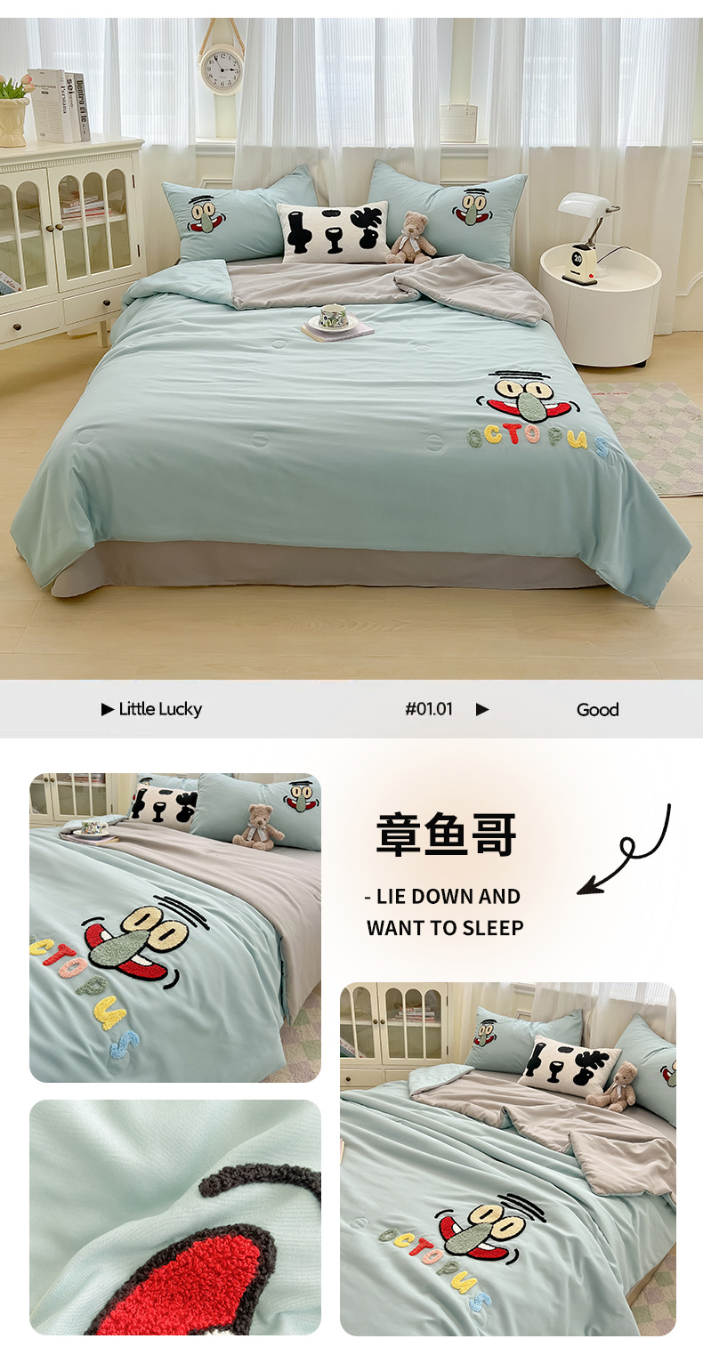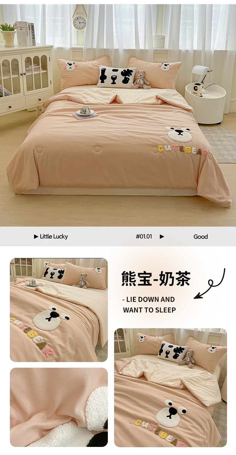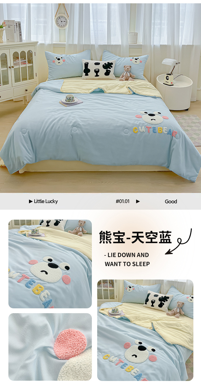 (总)眠帛家居 2025新款A类水洗棉卡通毛巾绣单床笠,海宝,小八,小星,小熊-奶咖,小熊-天空蓝,蟹宝,鸭鸭