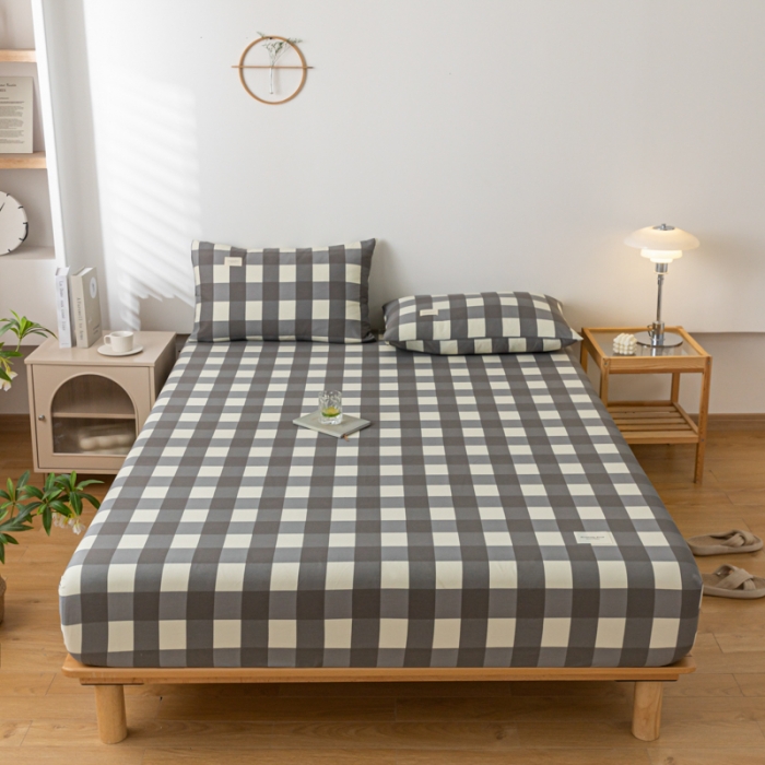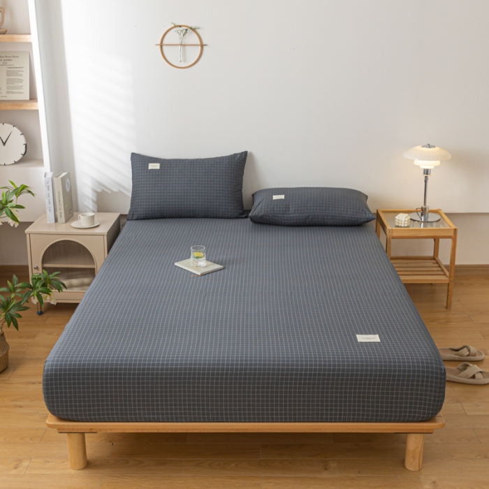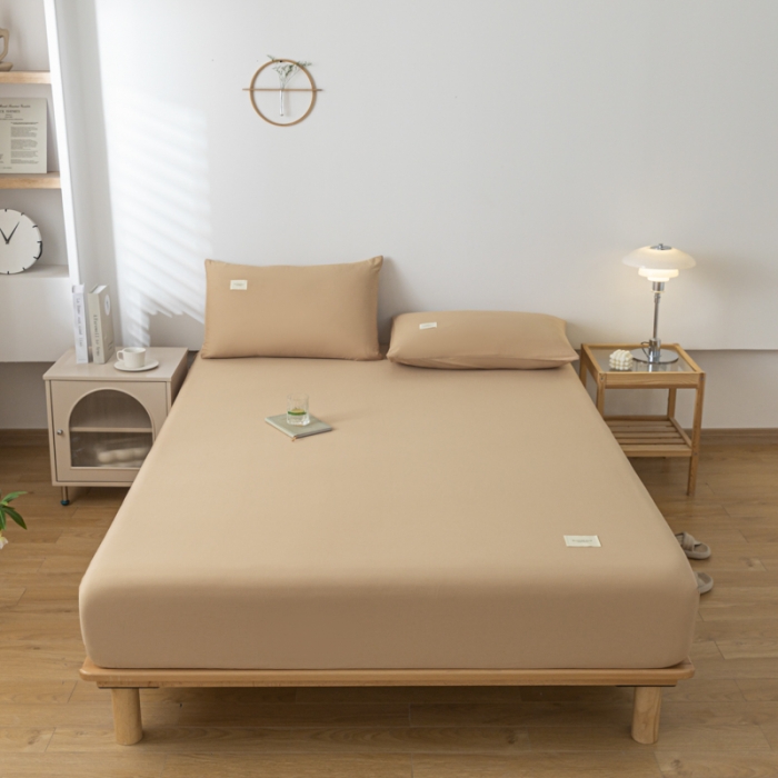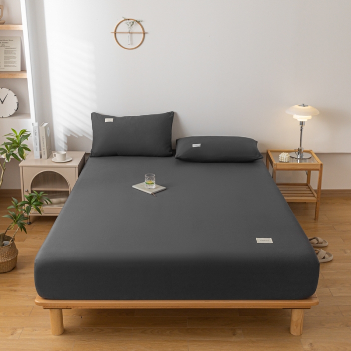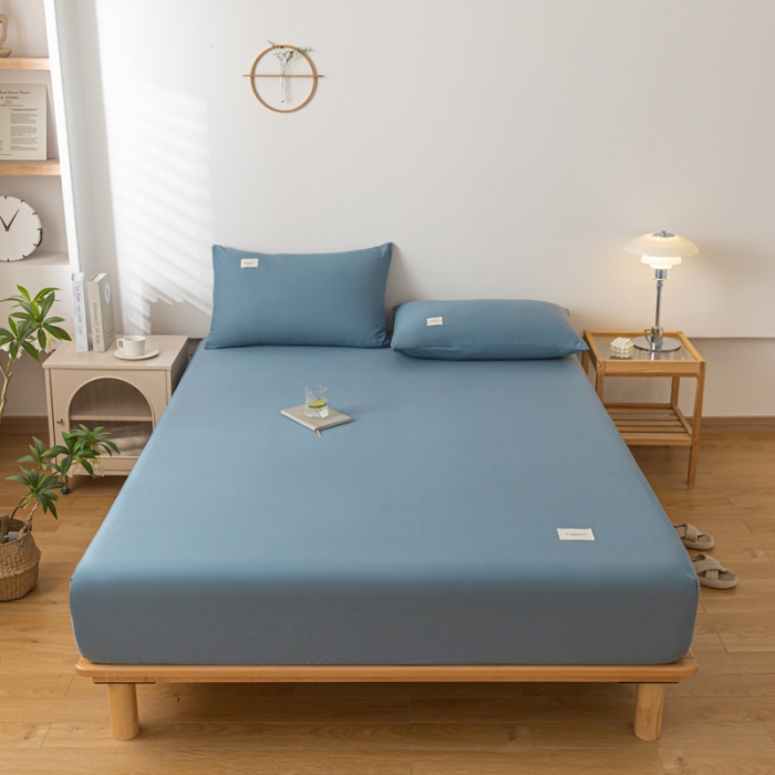 (总)跨境专供13372喷气织造全棉床笠纯棉纯色三件套