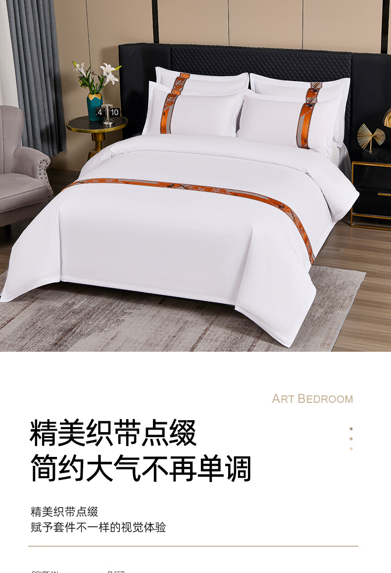 当前位置: 91家纺网 > 商品网购 > 床品套件 > 四件套 > 普通磨毛四件套 > 中乾酒店布草工厂店 2025新款120克加密织带款酒店磨毛四件套 柿柿如意