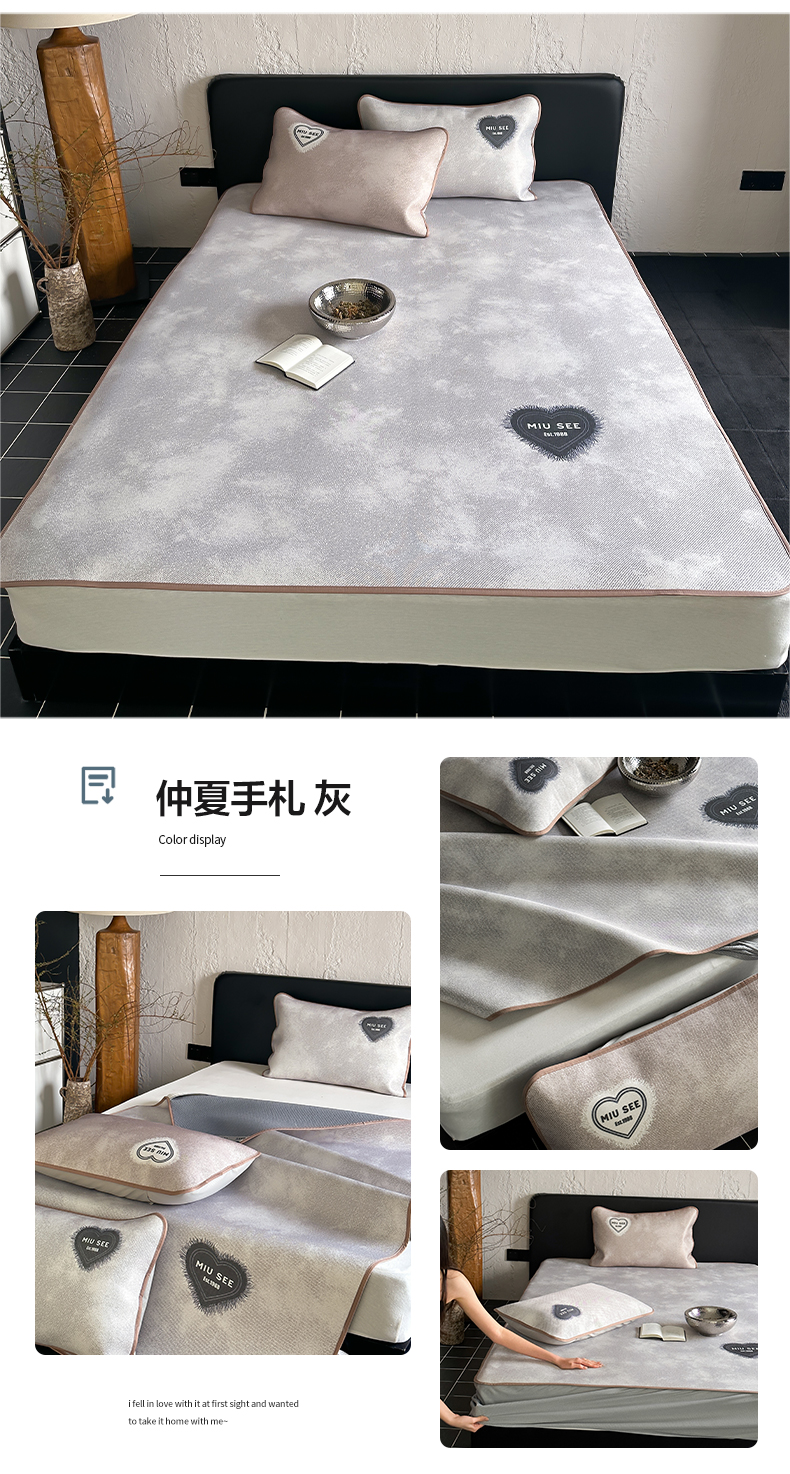 (总)三味舒屋 2025新款仲夏手札时尚印花冰藤凉席席子,仲夏手札米 床席,仲夏手札粉 床席,仲夏手札灰 床席,仲夏手札粉 床笠,仲夏手札灰 床笠,仲夏手札米 床笠