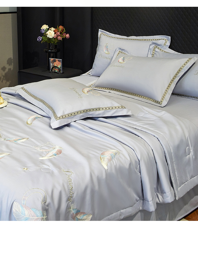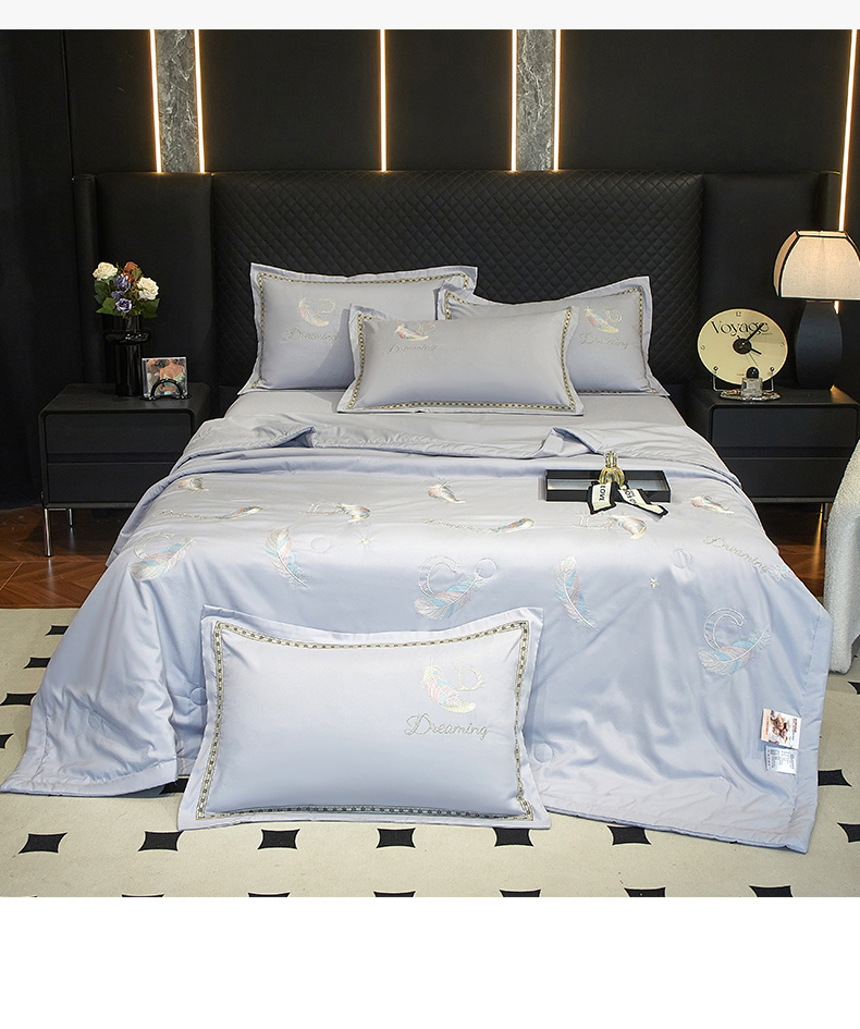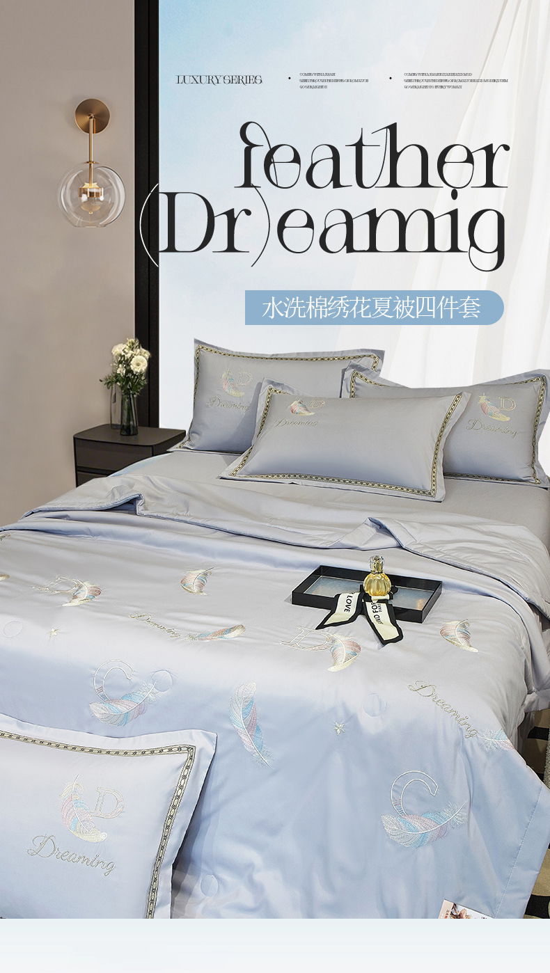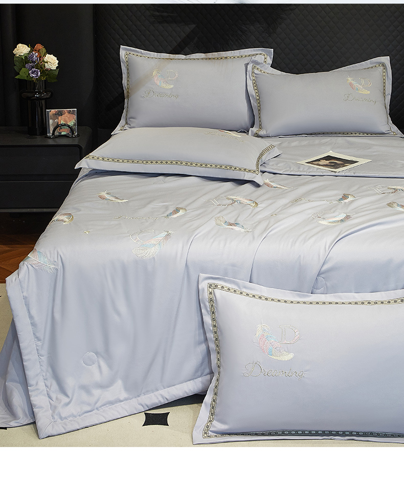 当前位置: 91家纺网 > 商品网购 > 床品套件 > 四件套 > 佳宇轩 2025爆款A类水洗棉刺绣花边夏被夏凉被空调被夏季薄被子三四件套轻奢凉感可机洗 蜜羽-浅灰