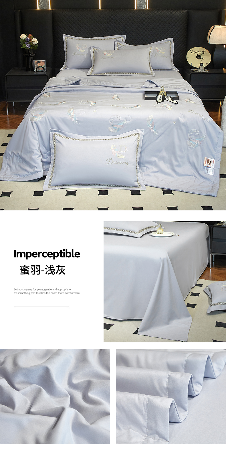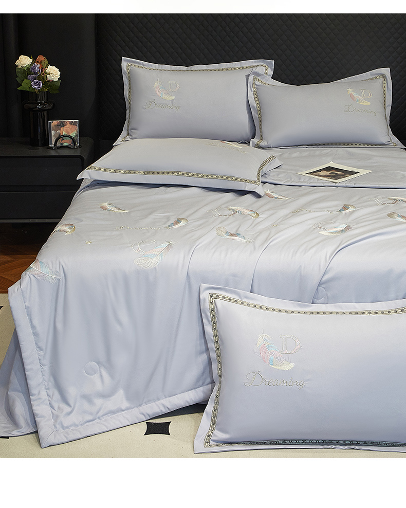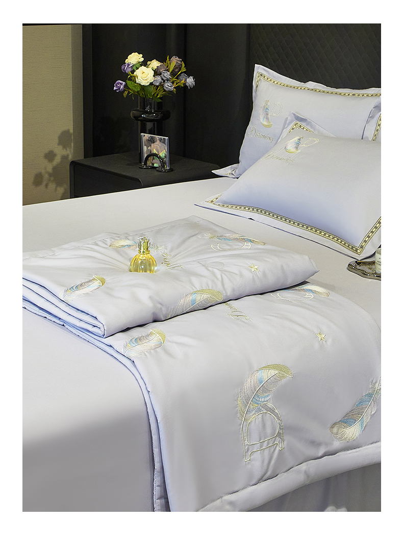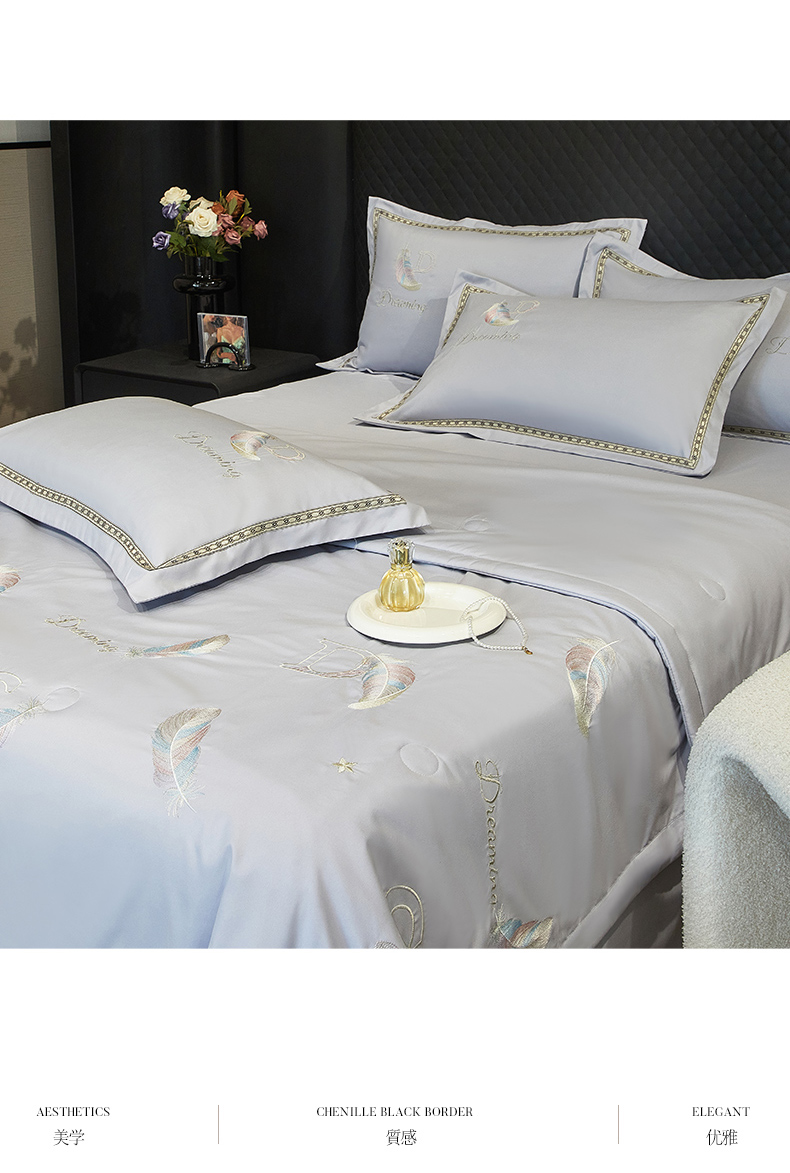 当前位置: 91家纺网 > 商品网购 > 床品套件 > 四件套 > 佳宇轩 2025爆款A类水洗棉刺绣花边夏被夏凉被空调被夏季薄被子三四件套轻奢凉感可机洗 蜜羽-浅灰