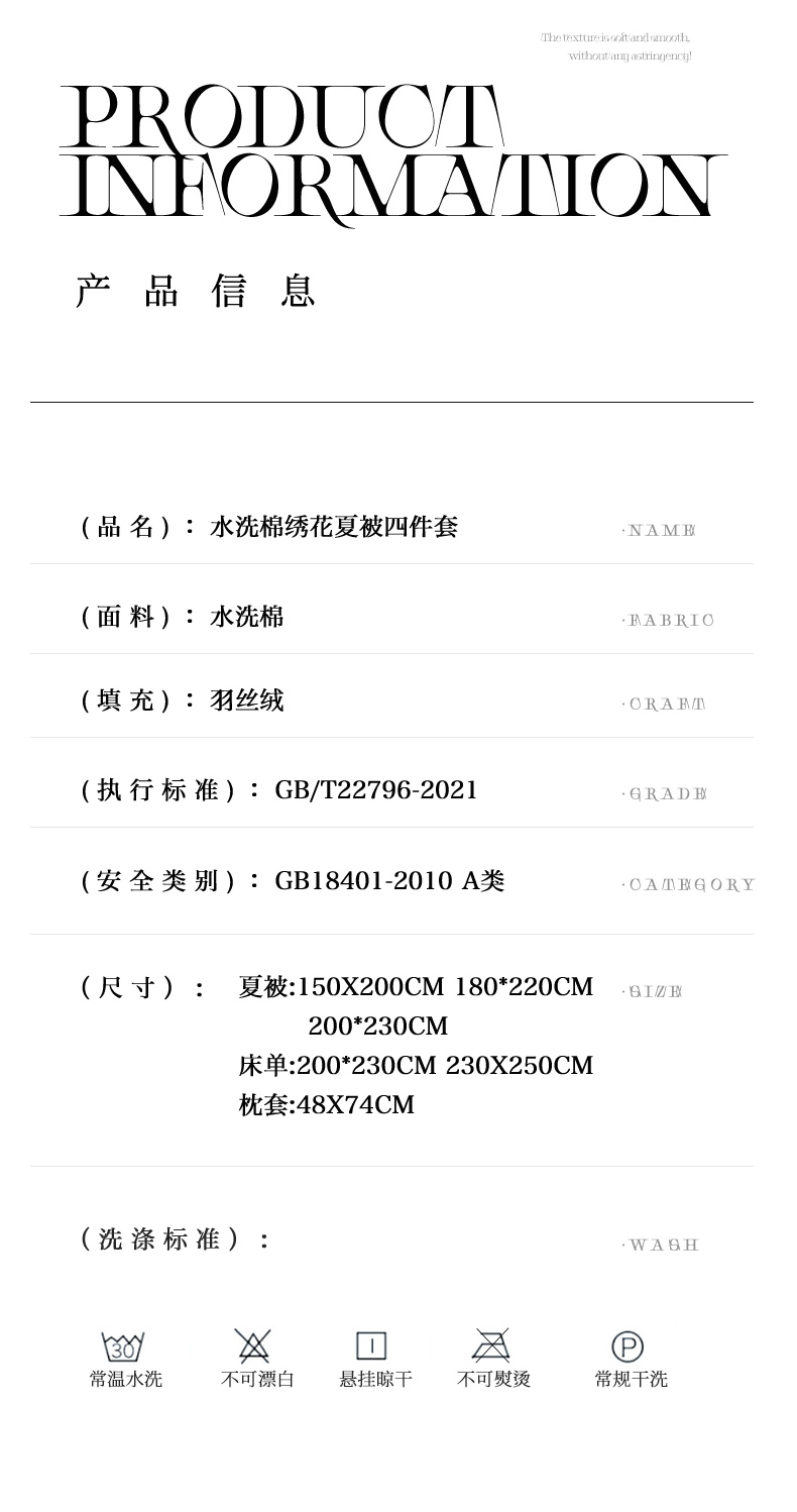 200x230cm夏被四件套 | ¥95.00 |