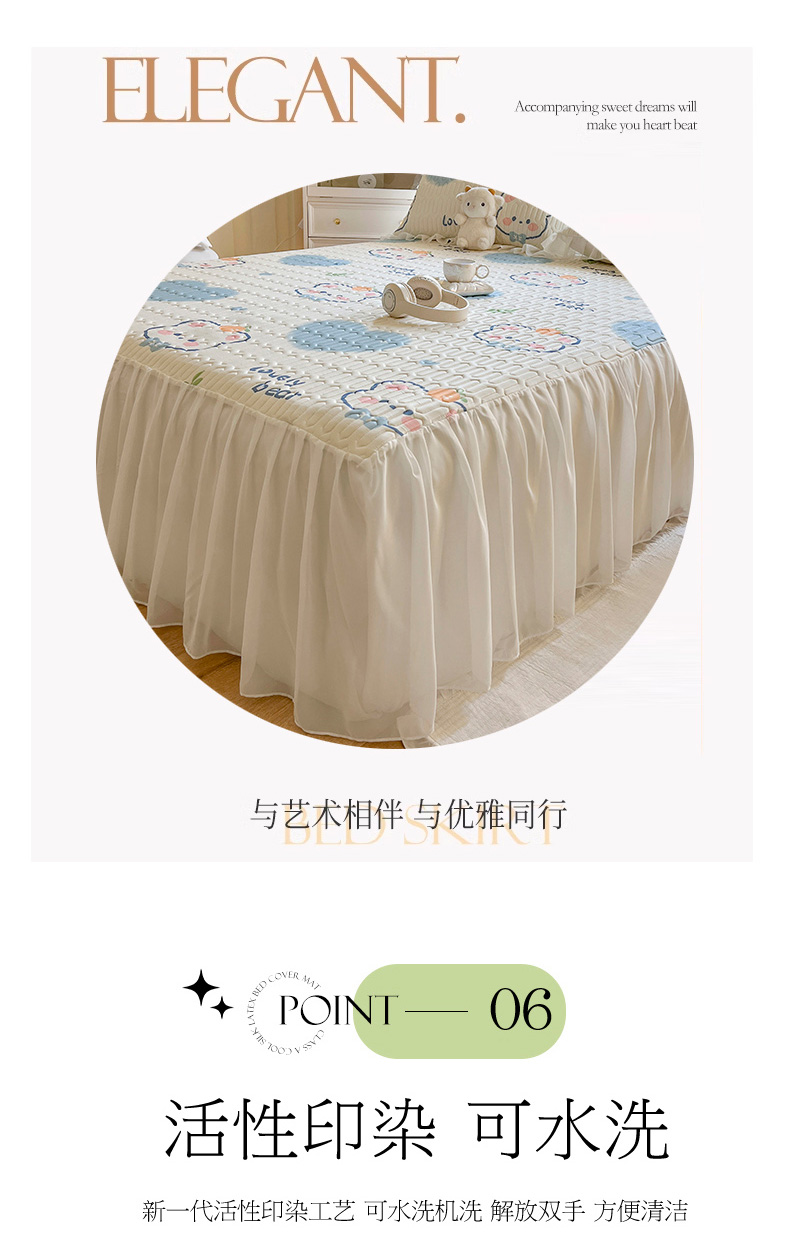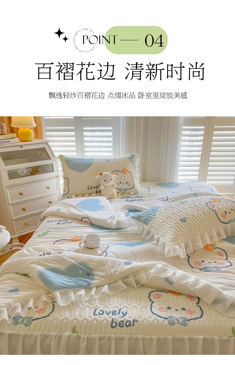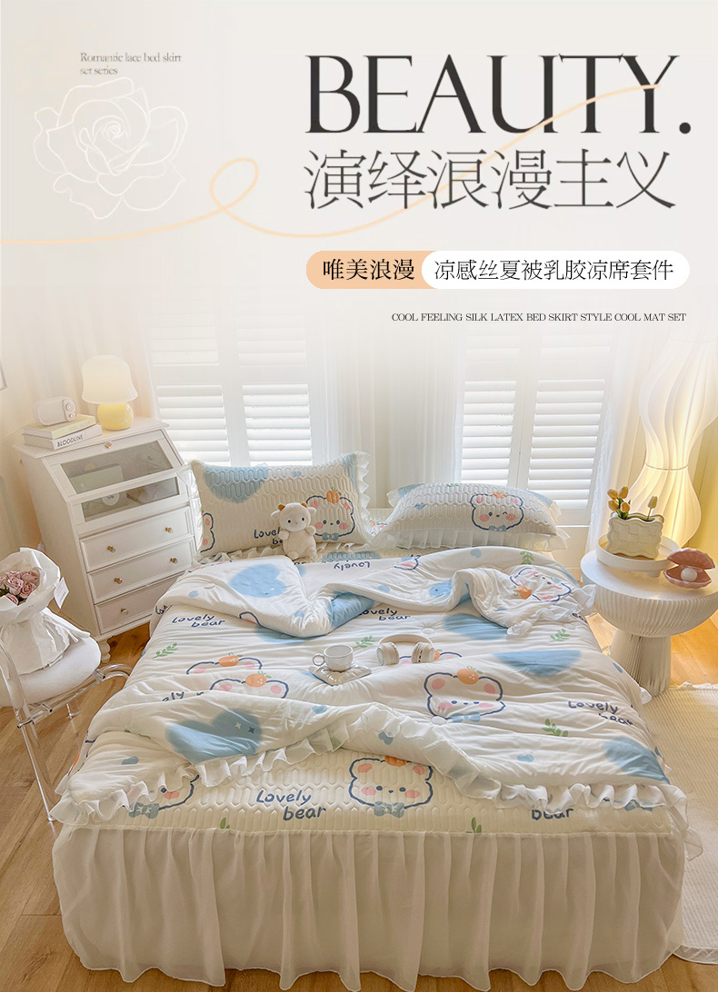 商品名称:慕澄2025新款小清新印花凉感丝花床裙款乳胶凉席 爱心小熊