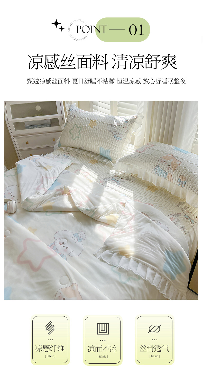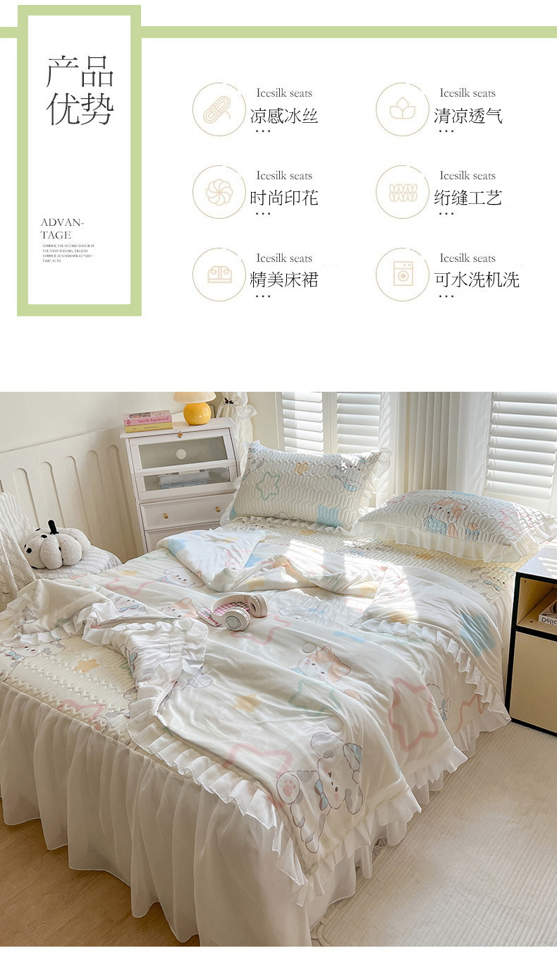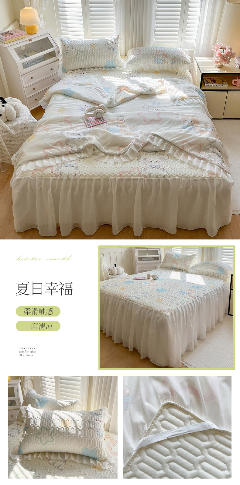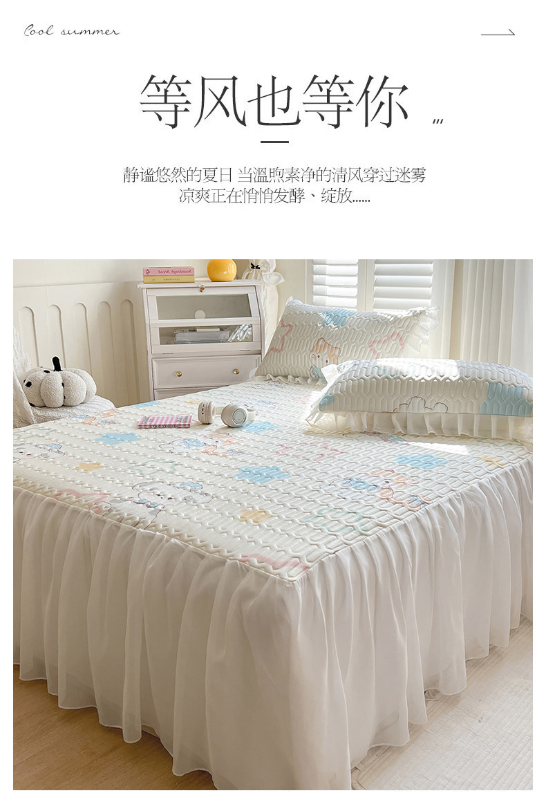 商品名称:慕澄2025新款小清新印花凉感丝花床裙款乳胶凉席 夏日幸福