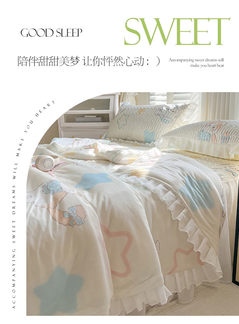 慕澄家纺 2024新款时尚印花泡泡棉花边夏被夏凉被空调被 夏被-甜小兔,夏被-甜小兔