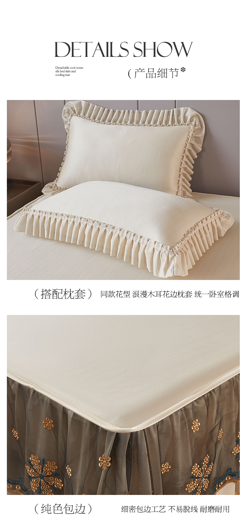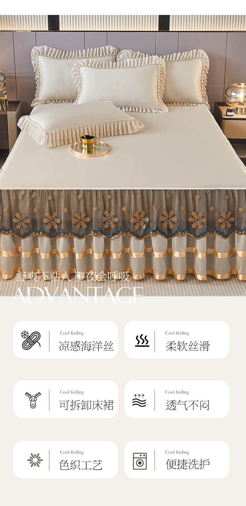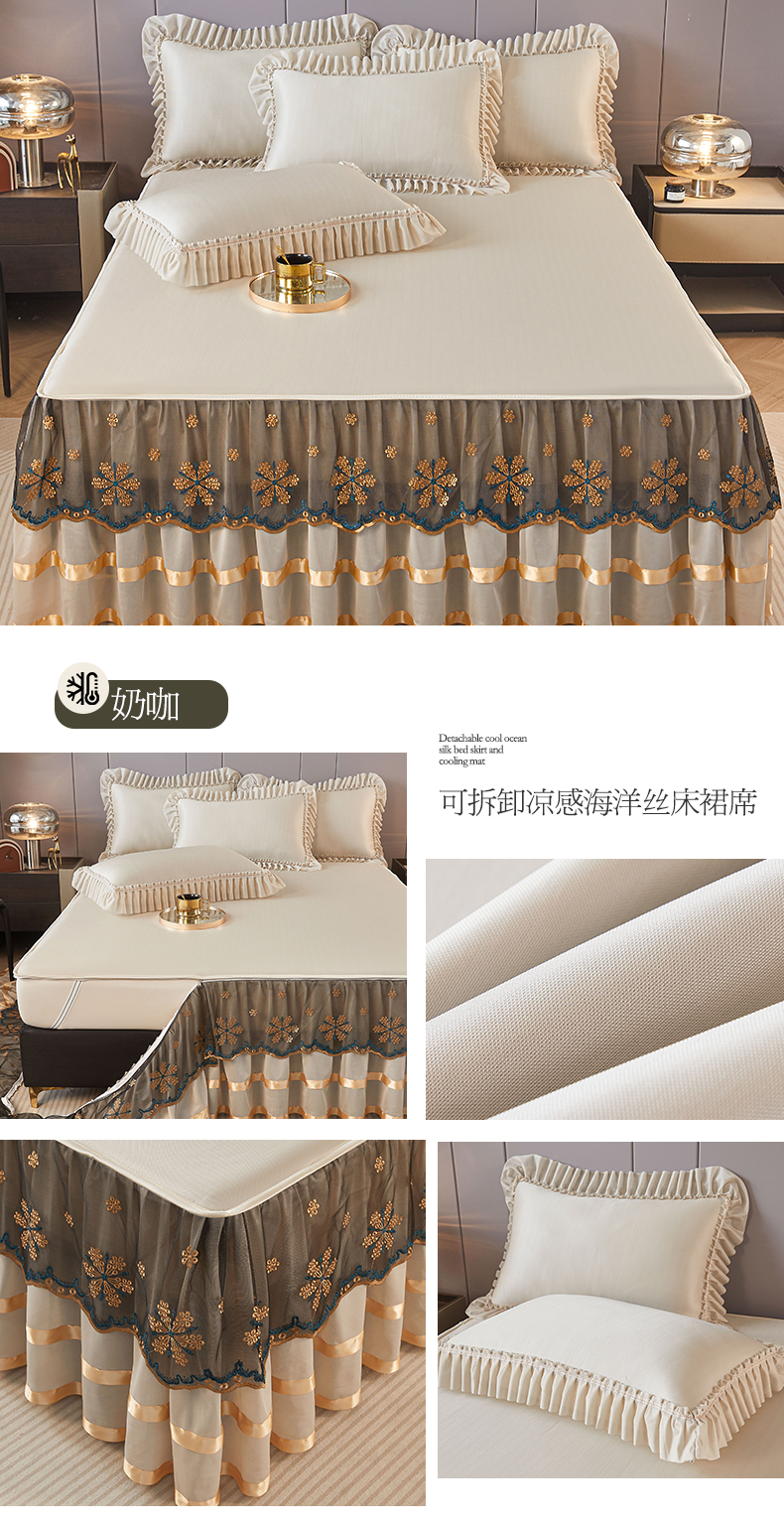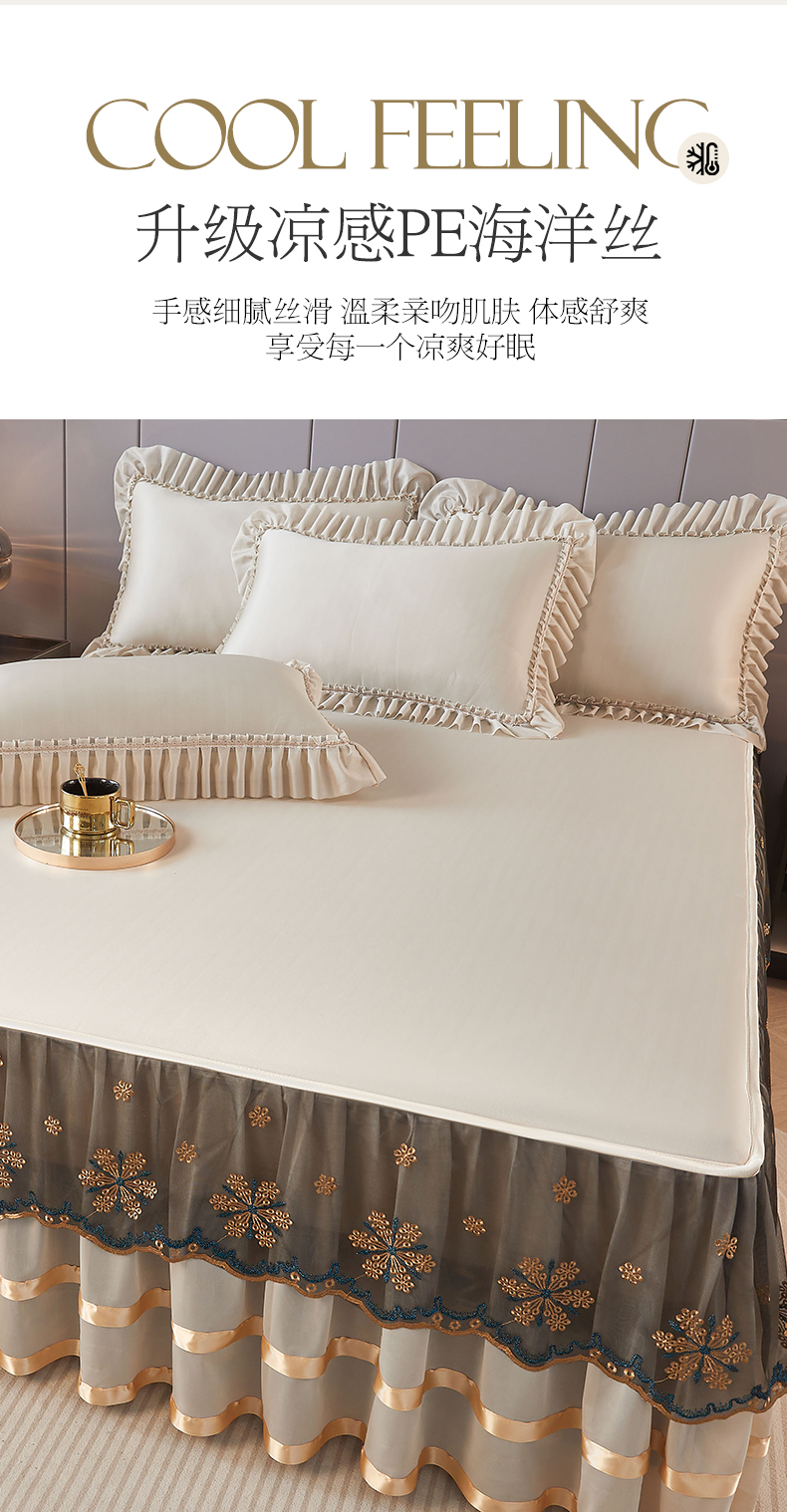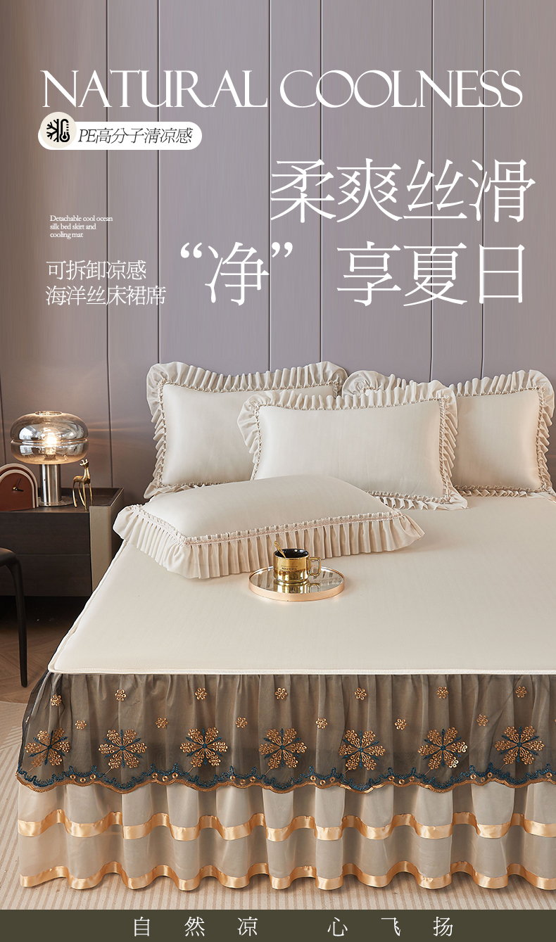 情恒家纺 2025新款纯色可拆卸PE海洋丝床裙席三件套 奶咖