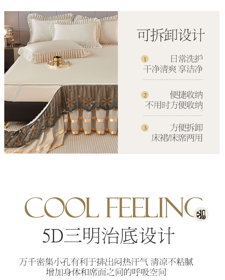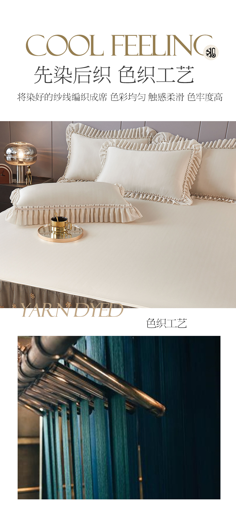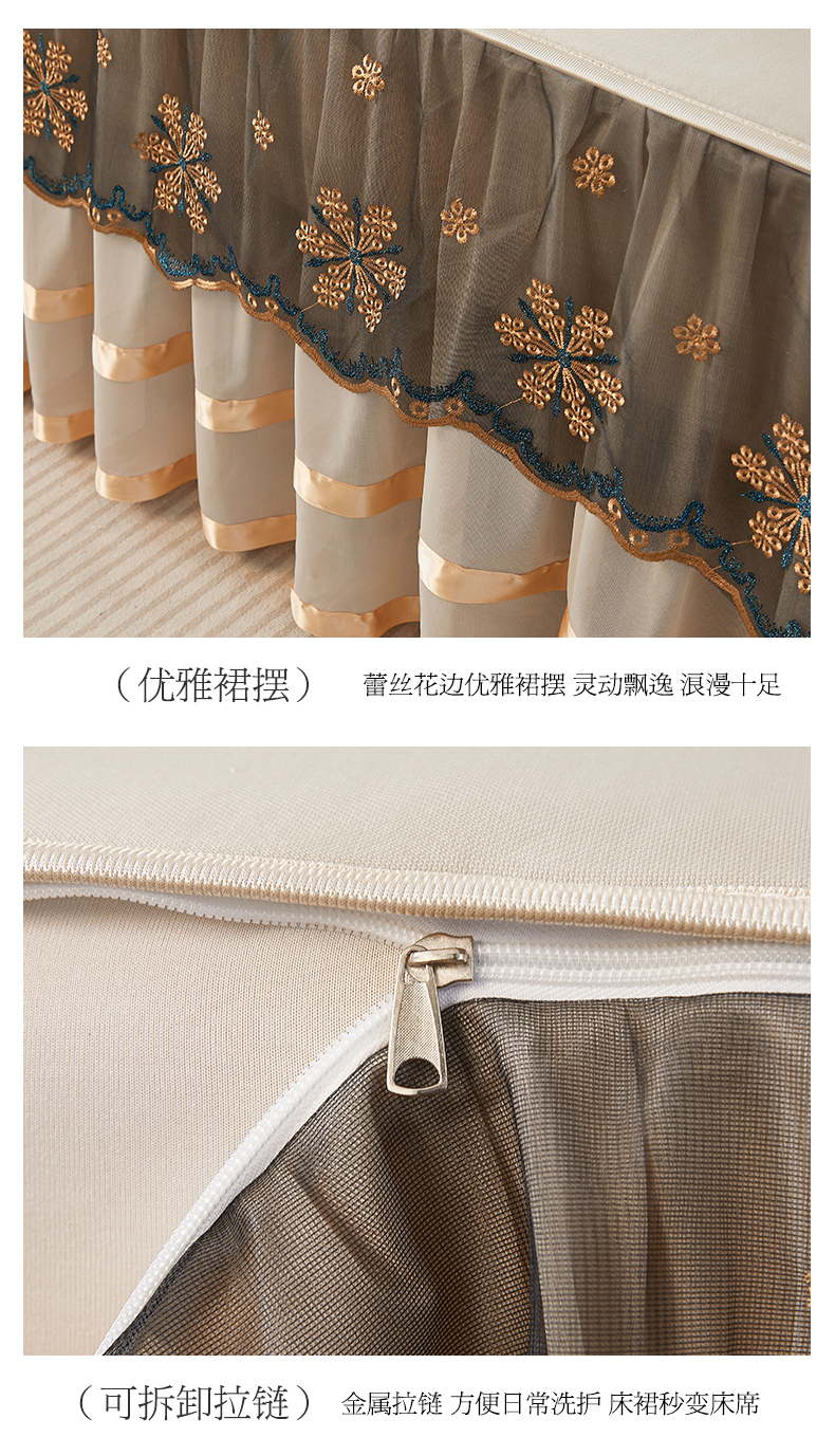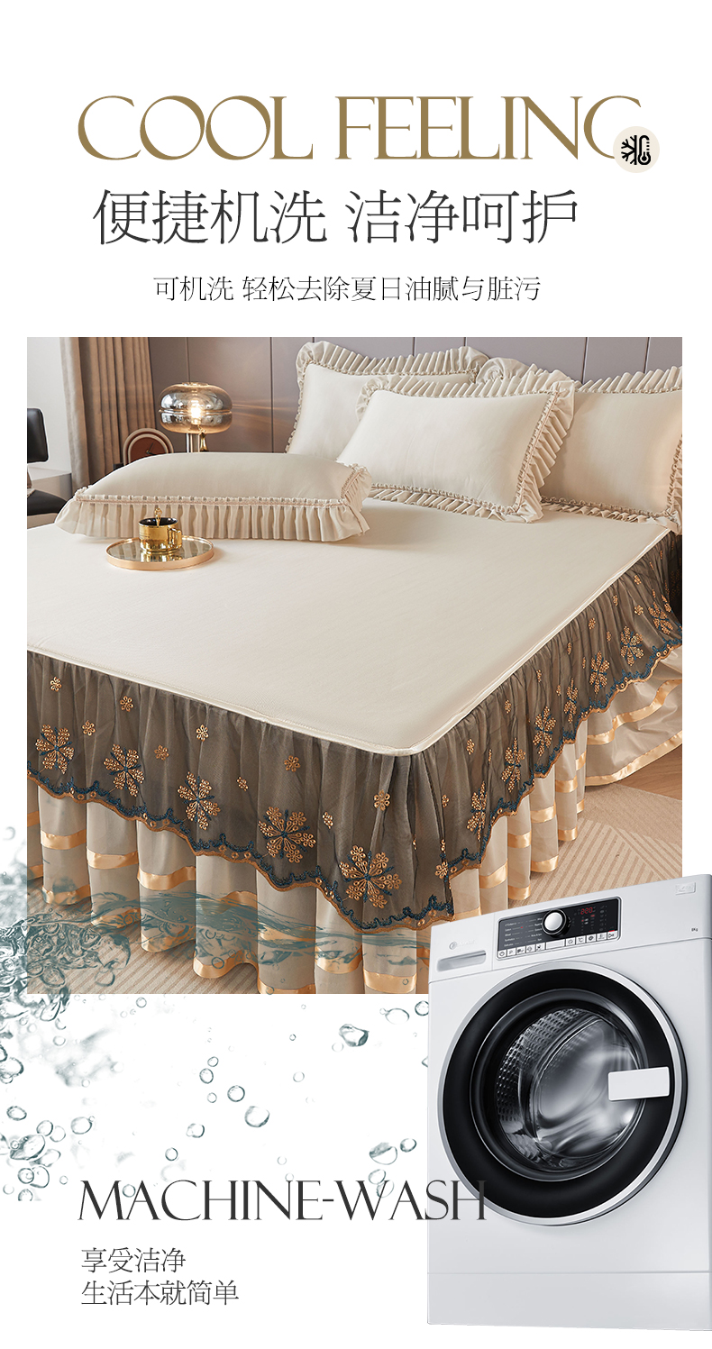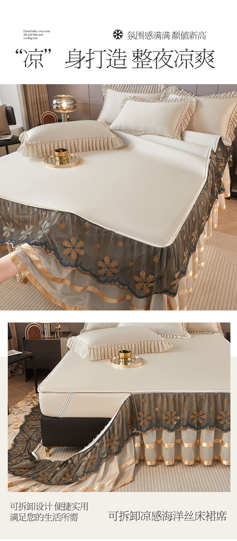 情恒家纺 2025新款纯色可拆卸PE海洋丝床裙席三件套 奶咖