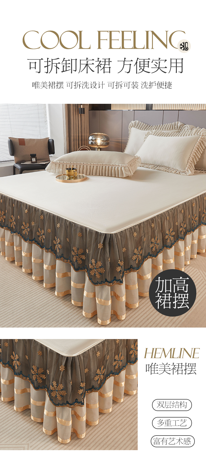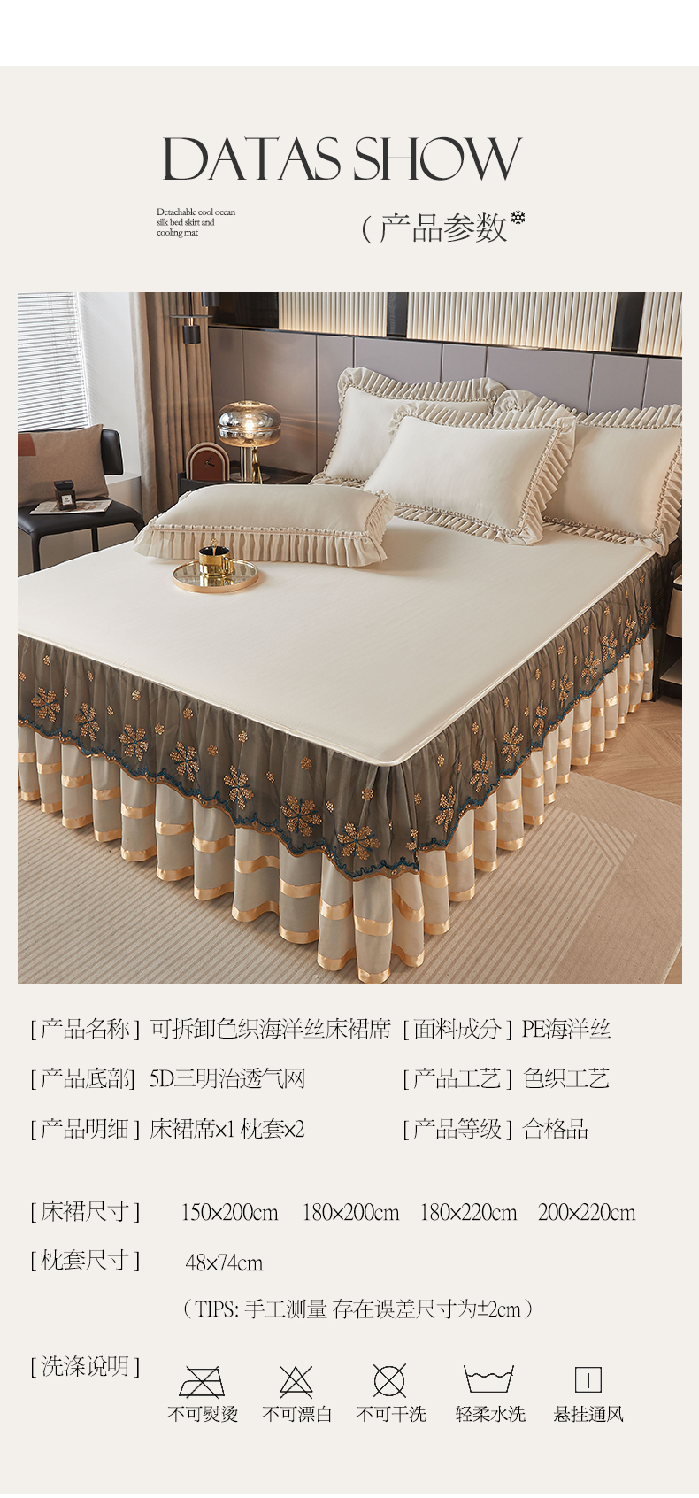 商品名称:情恒家纺 2025新款纯色可拆卸PE海洋丝床裙席三件套 奶咖