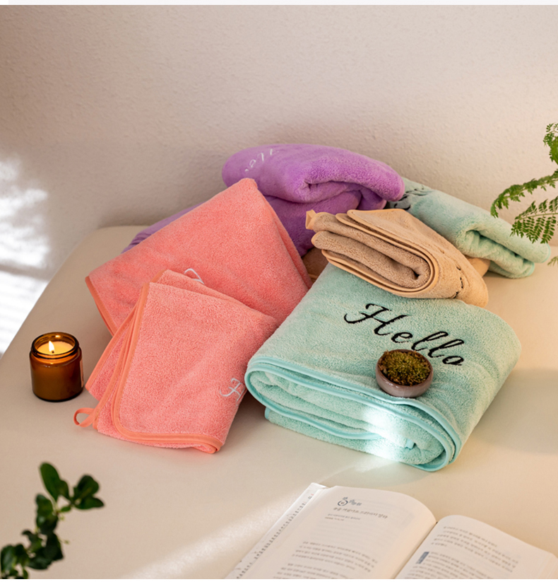 彩虹毛巾2025新款Hello珊瑚绒毛巾浴巾两件套跨境加厚吸水毛巾浴巾套装 70*140cm浴巾一条-紫色