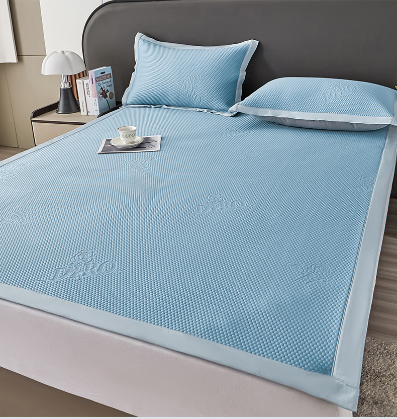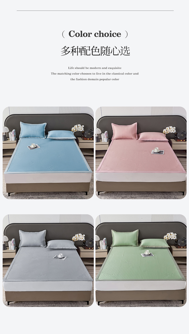 (总)正欣·被子·床垫 2025新款冰豆豆凉席-床裙款,蓝色,灰色,绿色,粉色