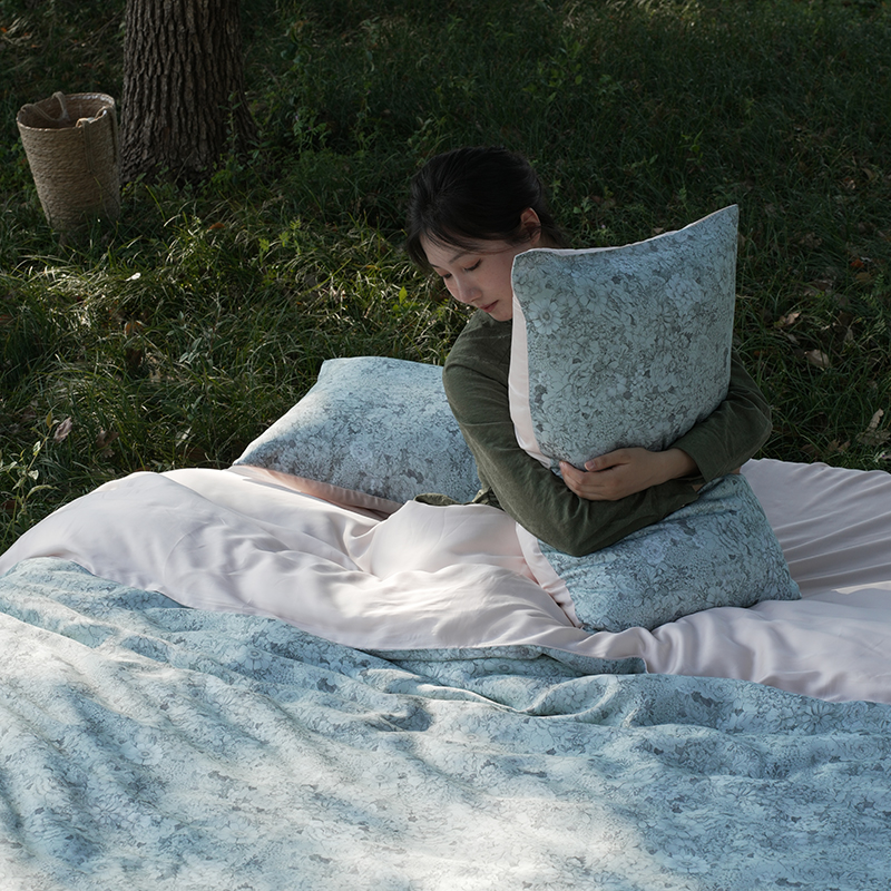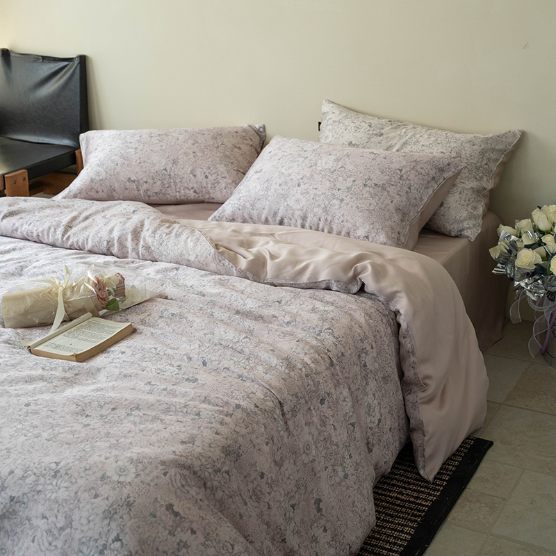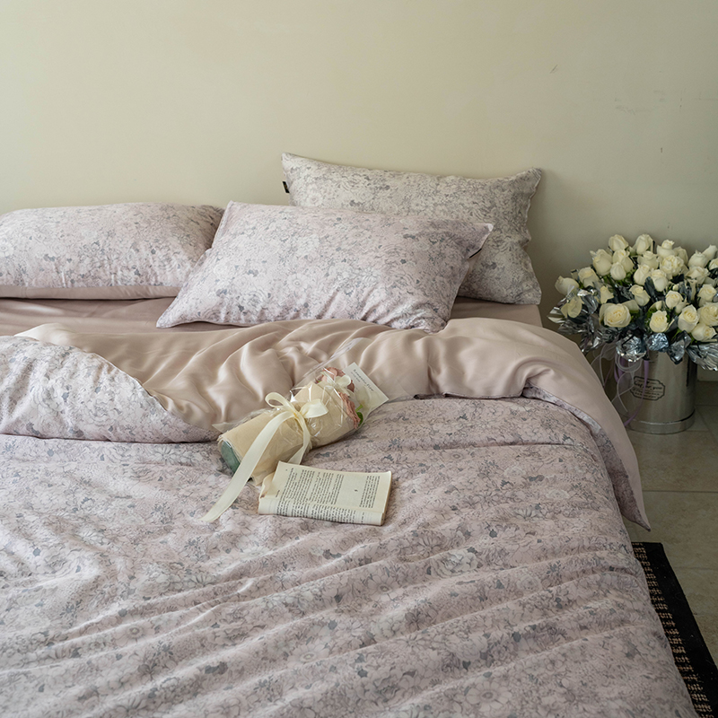 商品名称:禾时 2025新款60S兰精天丝数码印花四件套进口莱赛尔床品套件 安夏-粉