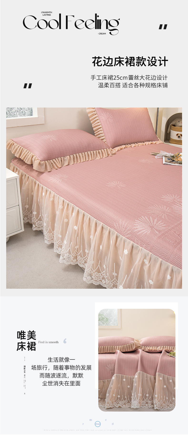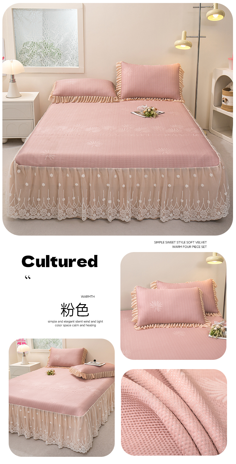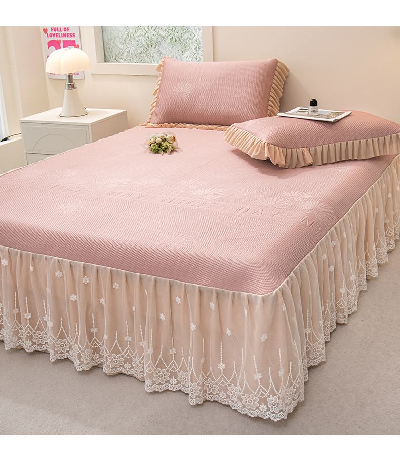 (总)美洲琳 2025新款650克凉豆豆凉席床裙三件套,湖蓝,浅灰,水绿,香槟,心粉