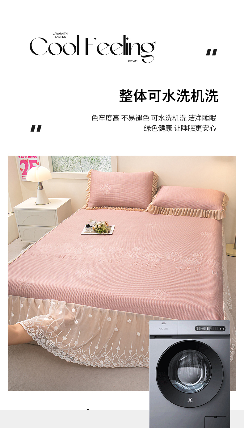 商品名称:美洲琳 2025新款A类PE高分子冰豆豆床单床笠床裙款凉席冰丝席凉感软席子 粉