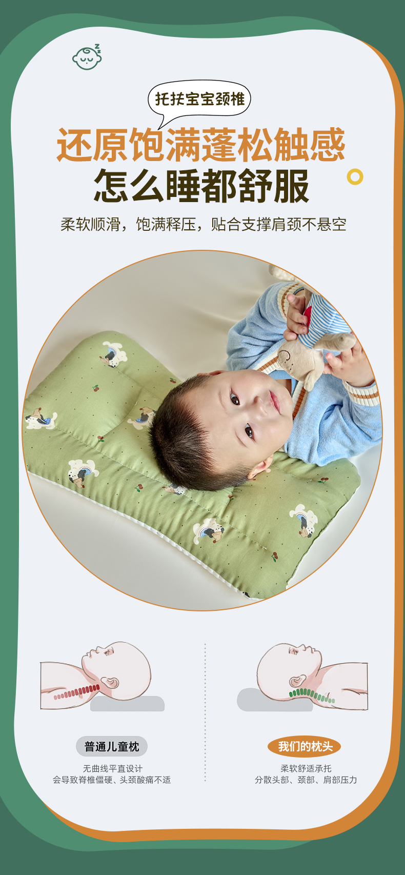 (总)昕科 2025新款亲肤舒适全棉纯棉萌趣决明子儿童枕枕头枕芯,黄嘟嘟小象 30x49cm/只,绿油油小鸭子 30x49cm/只,组合图仅供参考 30x49cm/只