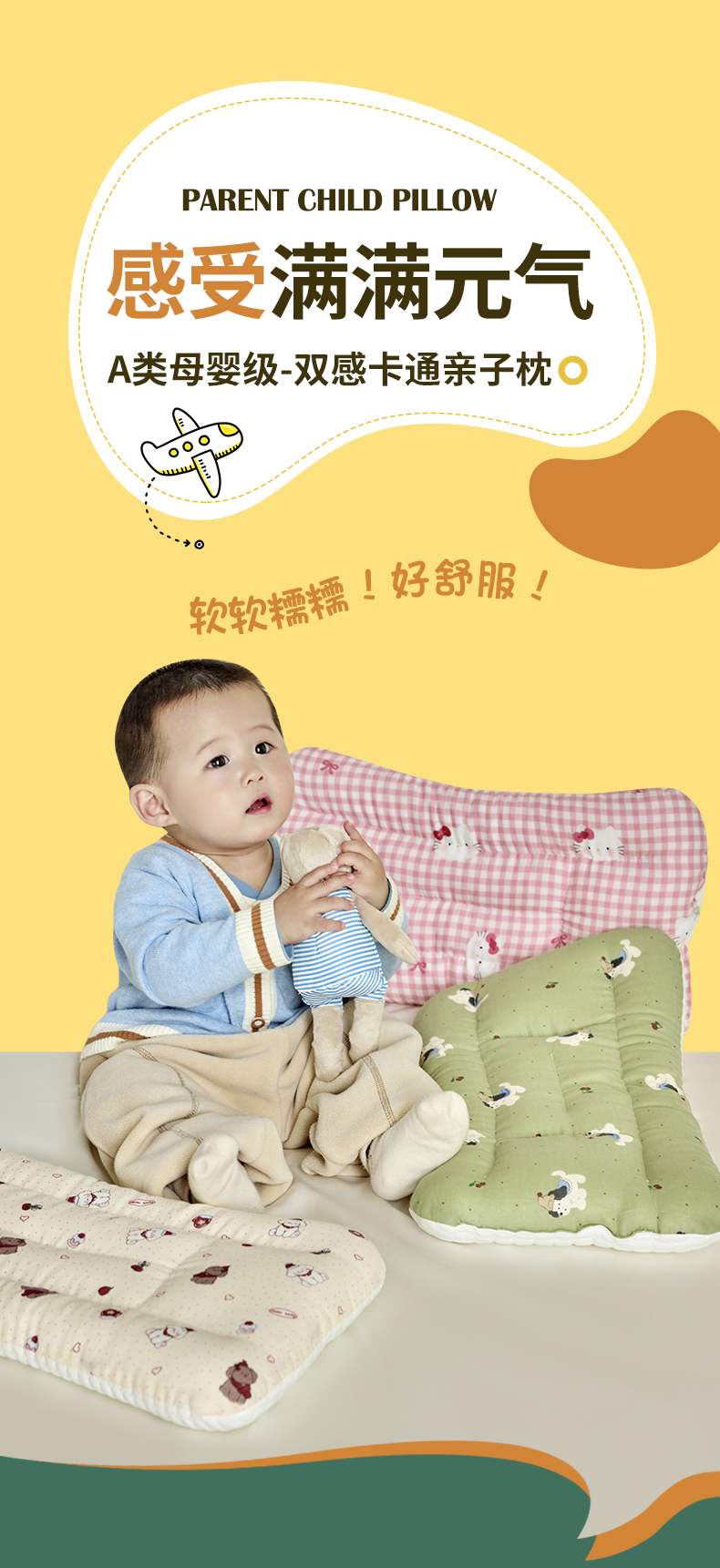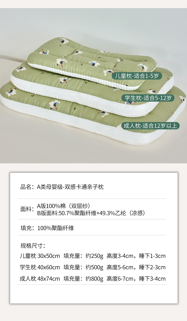 商品名称:(总)昕科 2025新款A类母婴级双感卡通亲子枕-全棉双层纱儿童枕学生凉感枕头羽丝棉成人颈椎枕芯