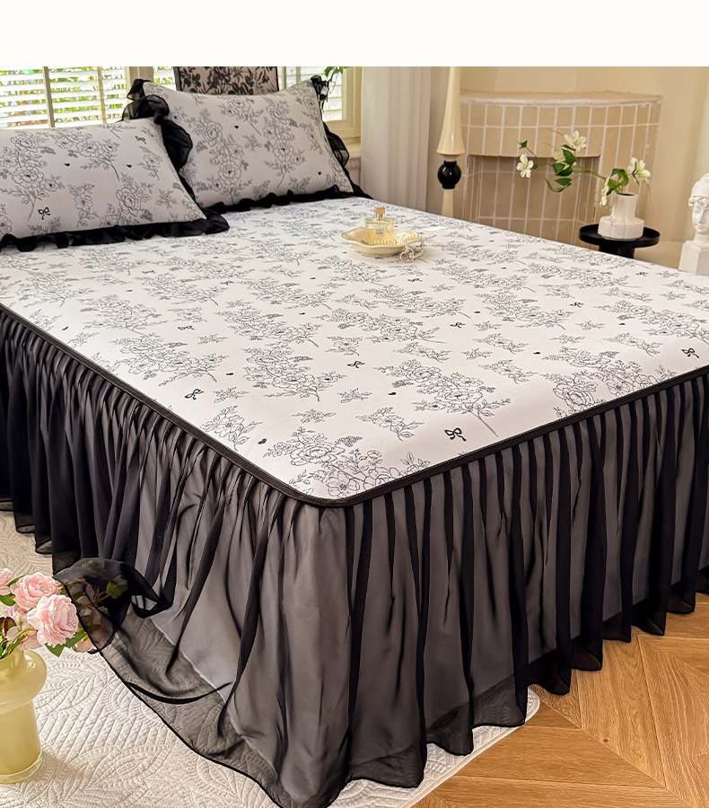 大麦家纺 2025新款碳光冰丝软席子凉席-床裙款 清格