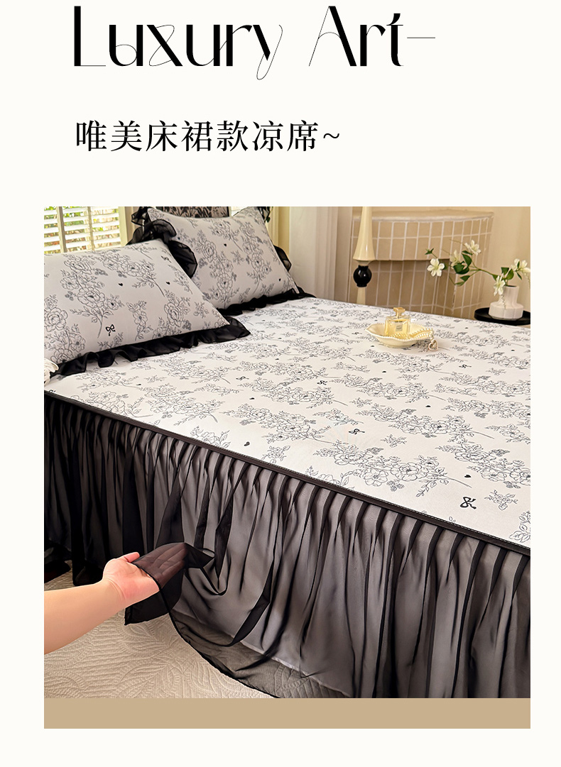 • 91家纺网 家纺一手货源 找家纺 大麦家纺 2025新款碳光冰丝软席子凉席-床裙款 清格