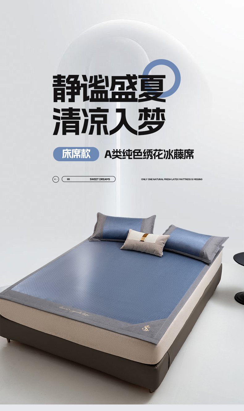商品名称:(总)宜家坊 2025新款A类纯色绣花冰藤席凉席三件套