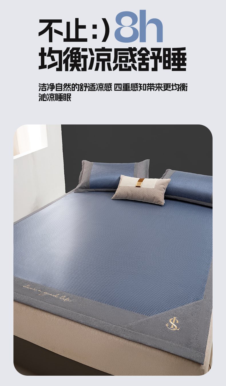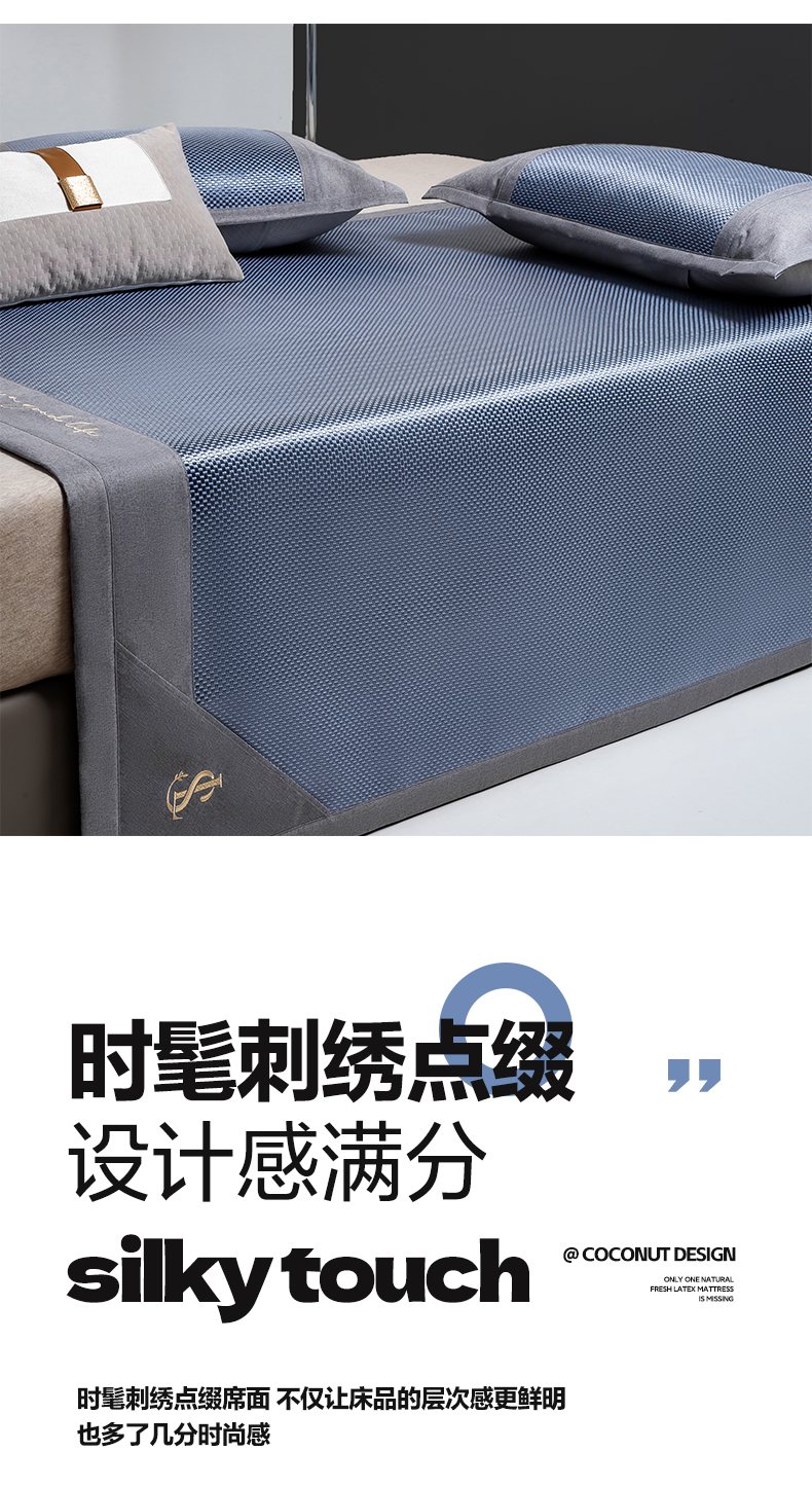 (总)宜家坊 2025新款A类纯色绣花冰藤席凉席三件套