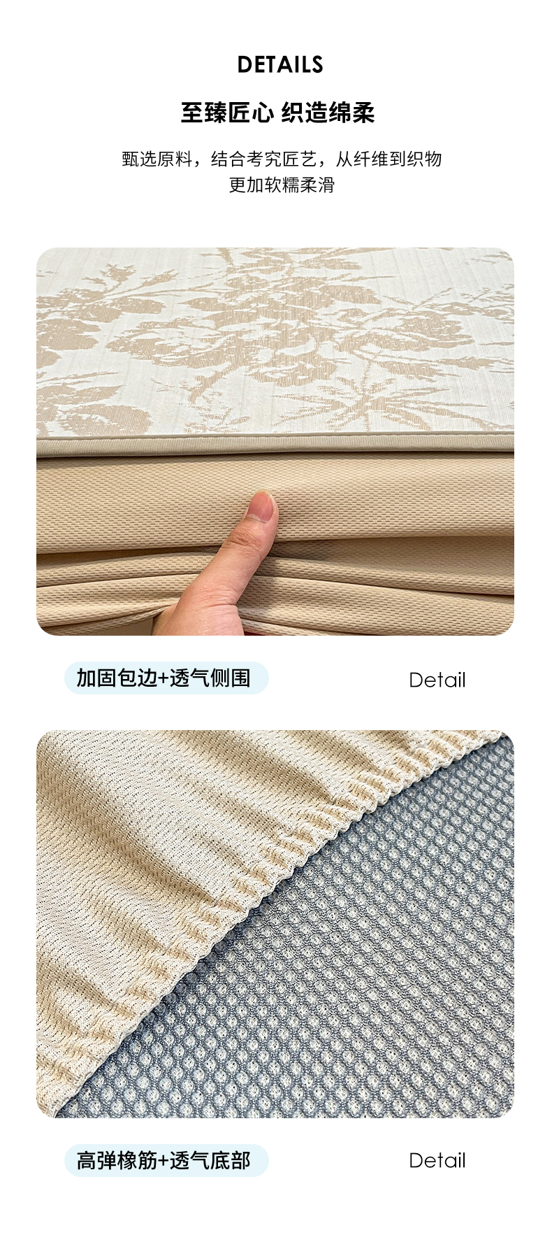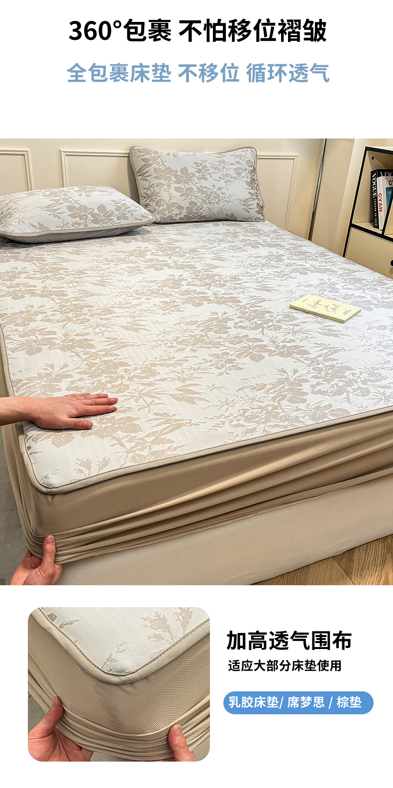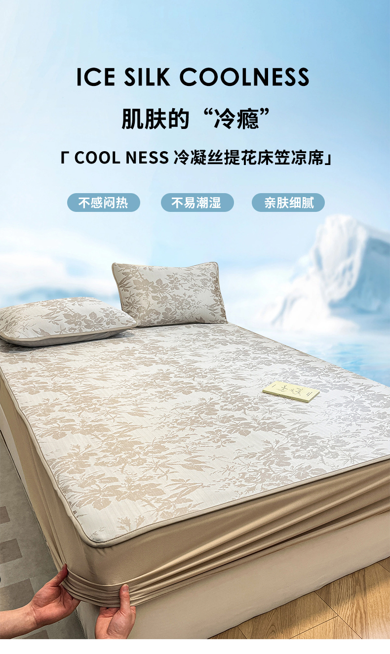 商品名称:宜代光年 2025新款冷凝丝可水洗提花凉感席-床笠款 床笠-凉感繁花-咖