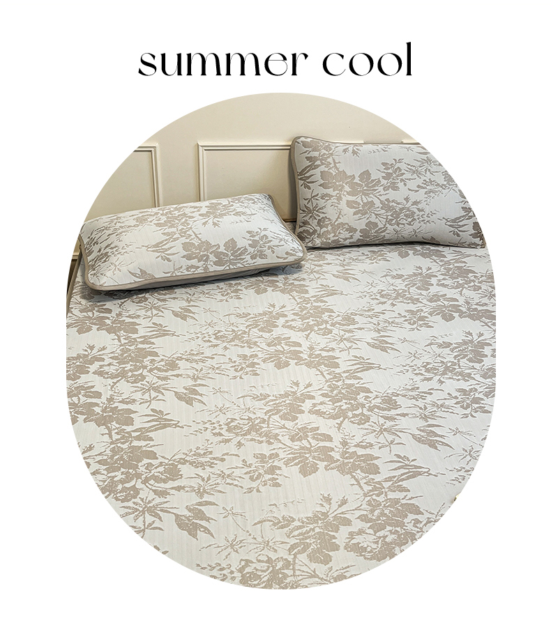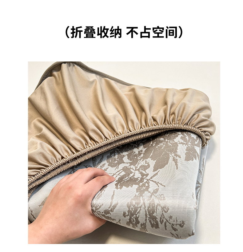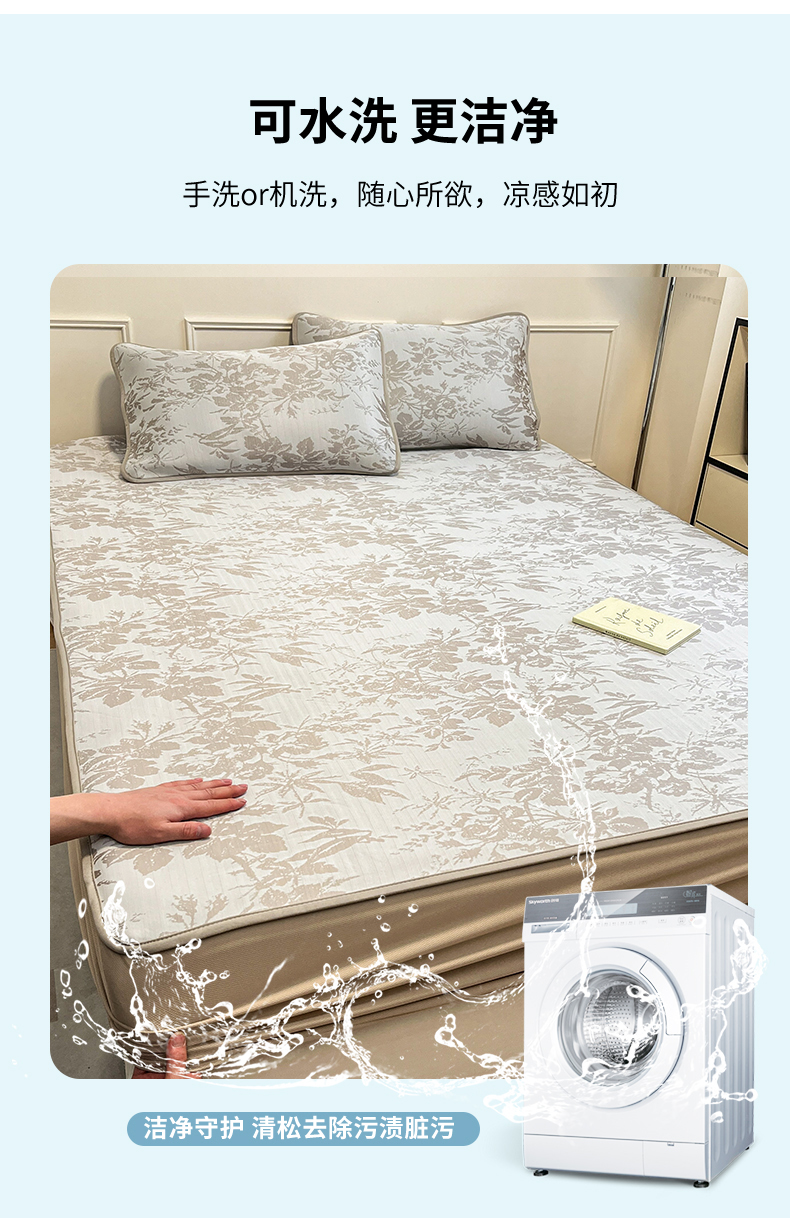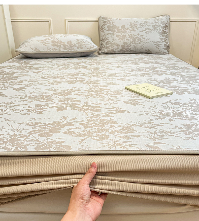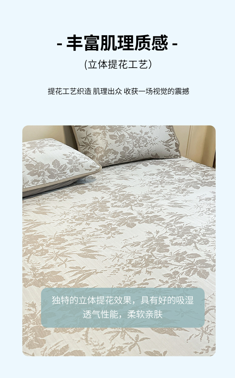 商品名称:宜代光年 2025新款冷凝丝可水洗提花凉感席-床笠款 床笠-凉感繁花-咖