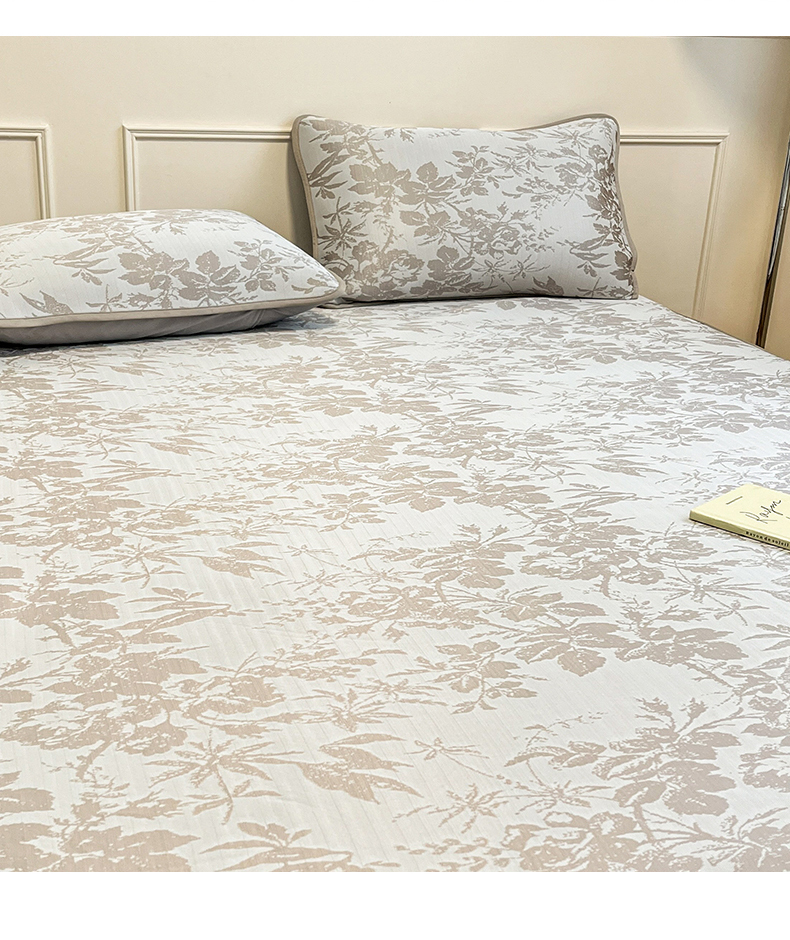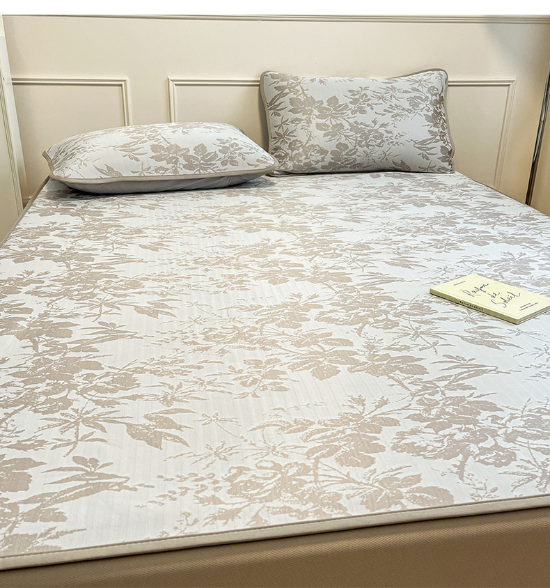 宜代光年 2025新款冷凝丝可水洗提花凉感席-床笠款 床笠-凉感繁花-咖
