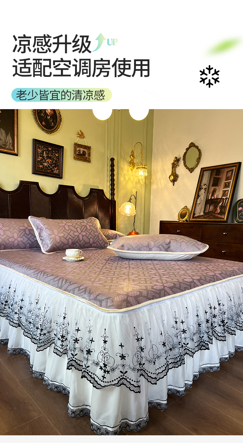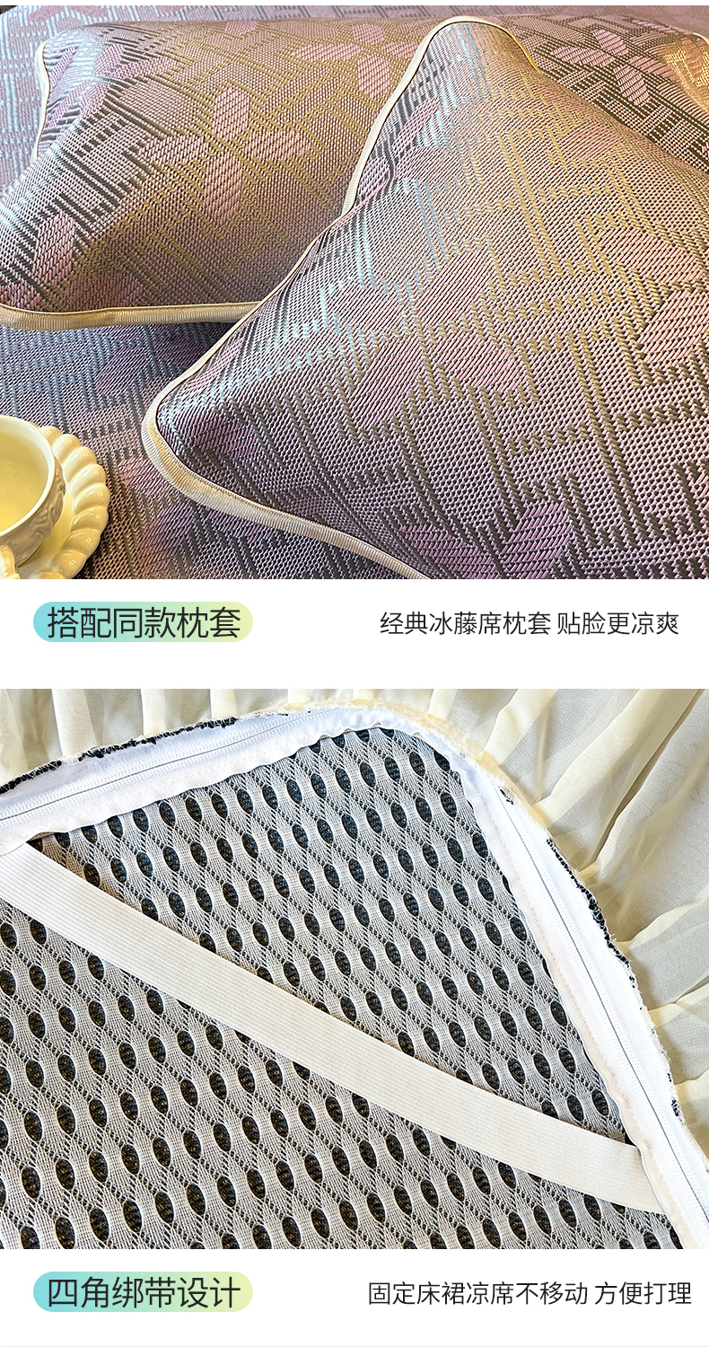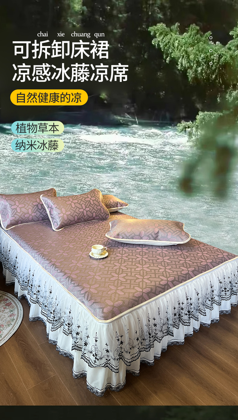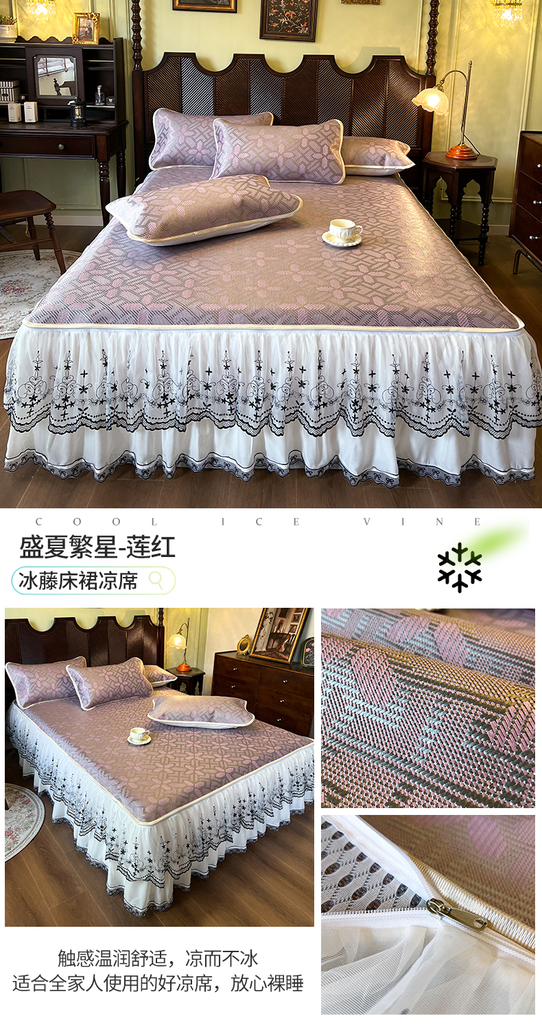 商品名称:网红馆(ck家纺) 2025新款可脱卸床裙款冰藤席-盛夏繁星 莲红